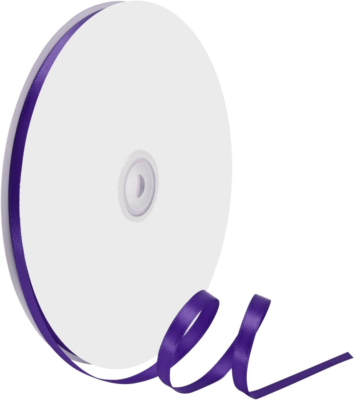 1/4" X 100 Yards Purple Satin Thin Ribbon Solid Color Double Faced Ribbons Perfect for Crafts Wedding Decor Bow Making Arts Sewing and More