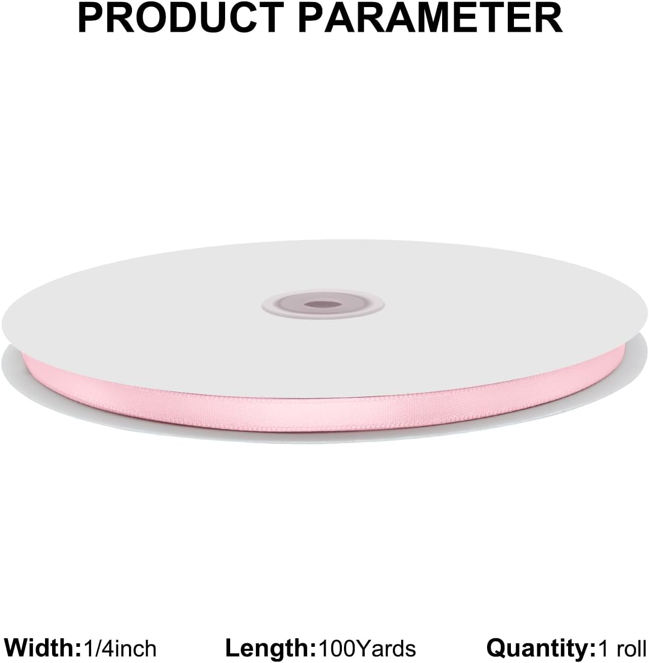 - 【Pearl Pink satin ribbon】 Double face satin ribbon total 100 yards, 1/4"inch in width.Quantity can meet your daily needs well.