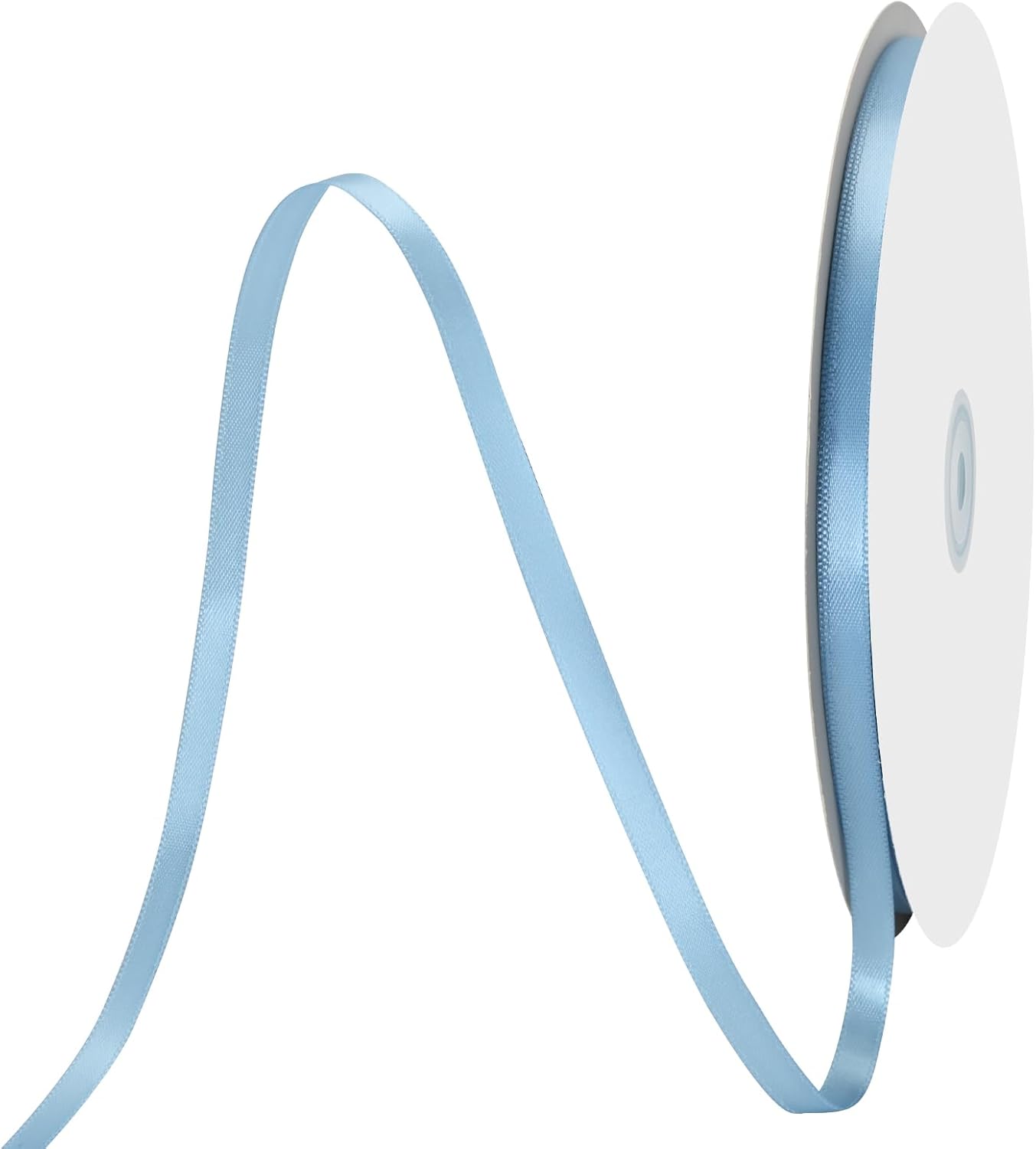 1/4" X 100 Yards Dusty Blue Satin Thin Ribbon Solid Color Double Faced Ribbons Perfect for Crafts Wedding Decor Bow Making Arts Sewing and More