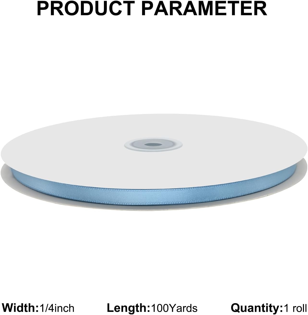 - 【Dusty Blue satin ribbon】 Double face satin ribbon total 100 yards, 1/4"inch in width.Quantity can meet your daily needs well.