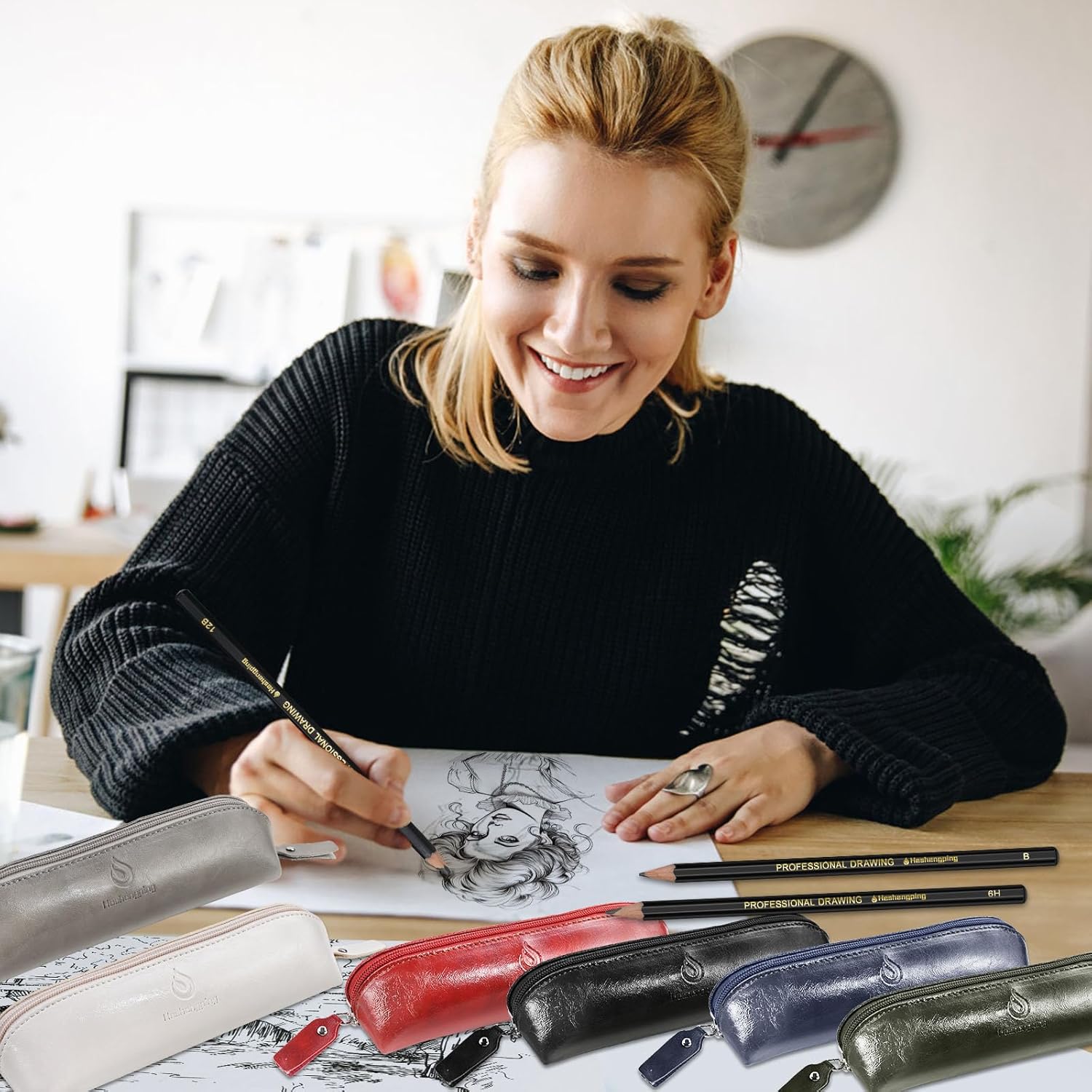 - 【Travel-Portable Storage & Ease To Carry 】The perfect home, school,office or travel art set, keep all your charcoal pencils, graphite sticks, art knife and more all properly stored when not in use thanks to the included Pencil case.Create a mini workspace wherever you go with. Enjoying the drawing time immediately.