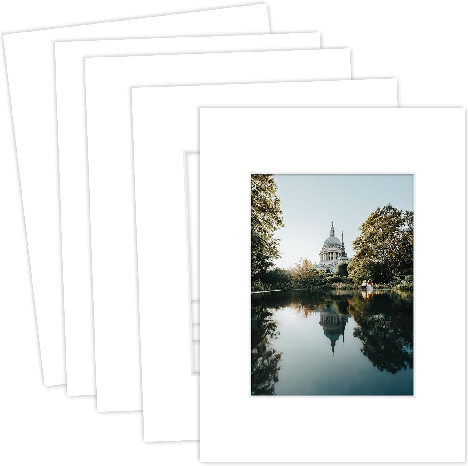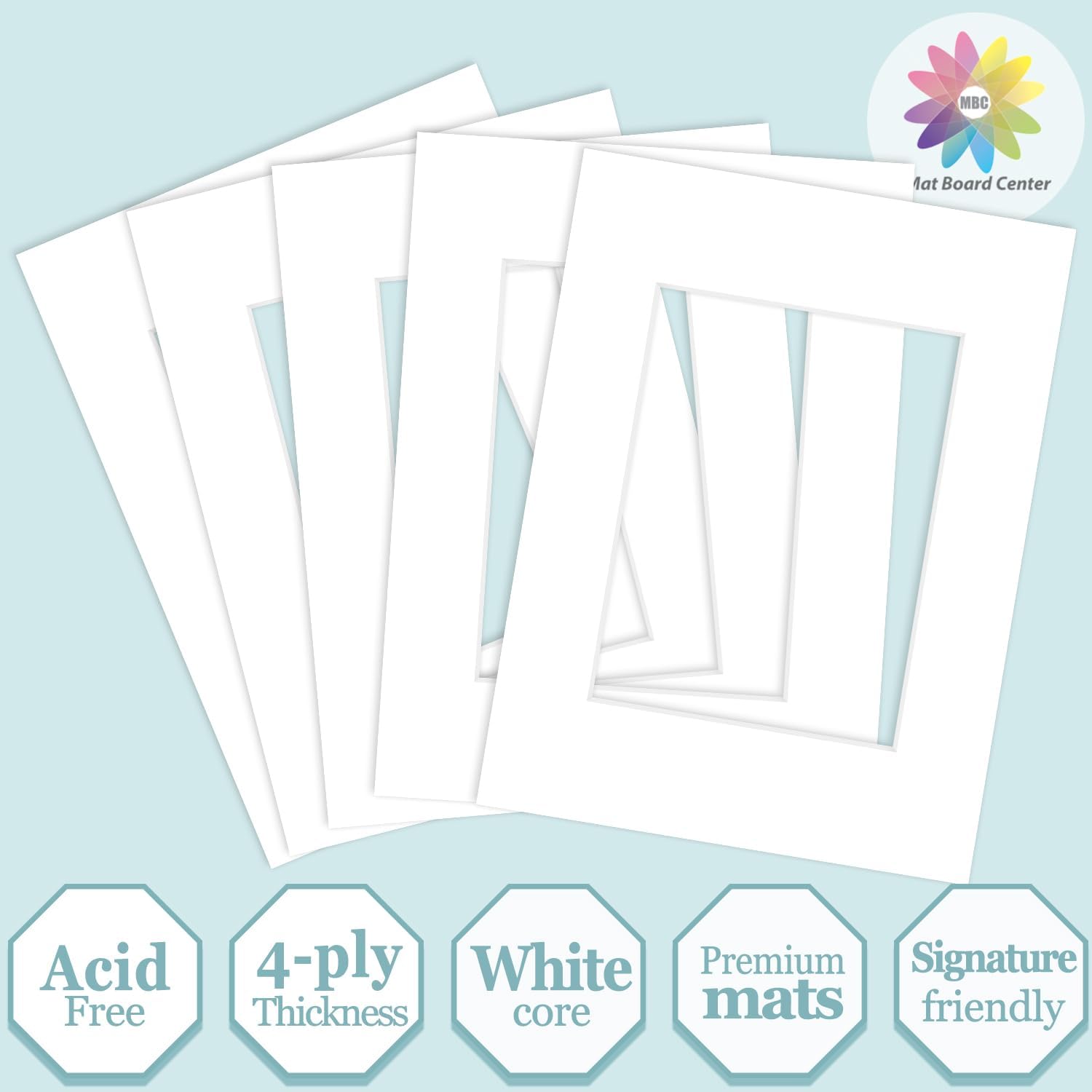 MBC Mat Board Center, 5 Pack 9X12 for 6X8 White Picture Mats Frame Mattes, Bevel Cut, Acid Free, 4-Ply Thickness