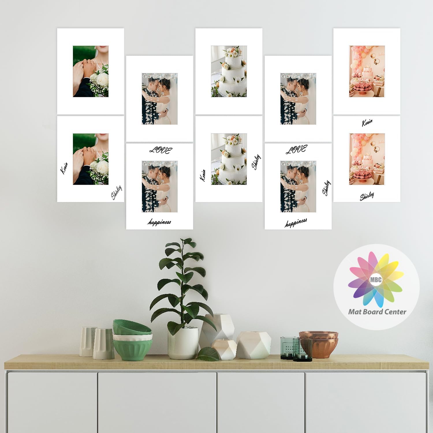 MBC Mat Board Center, 10 Pack 8.5X11 for 5X7 White Picture Mats Frame Mattes, Bevel Cut, Acid Free, 4-Ply Thickness