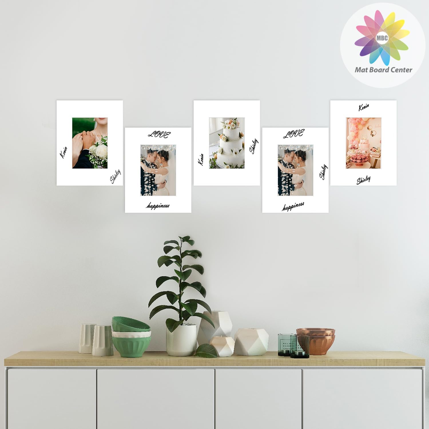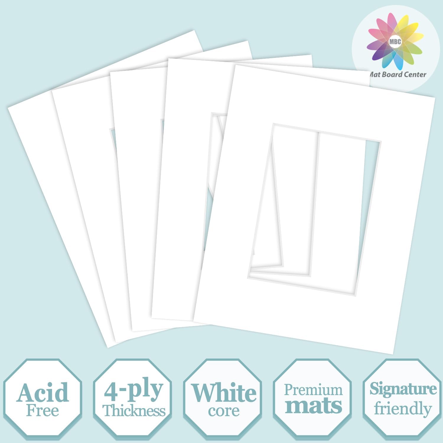 MBC Mat Board Center, 5 Pack 8.5X11 for 5X7 White Picture Mats Frame Mattes, Bevel Cut, Acid Free, 4-Ply Thickness