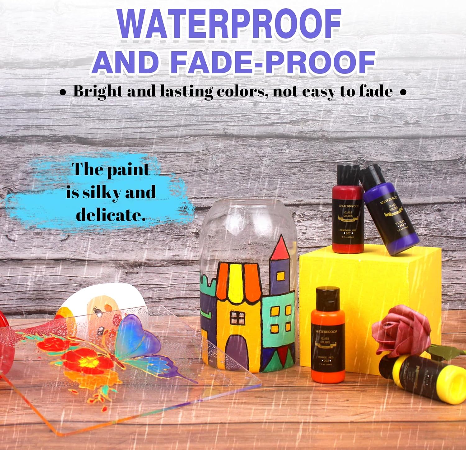 - 【Waterproof & No Heating Needed】 No heating needed,artist-quality,premium stained glass paint glide on smoothly, dry quickly and stay as beautiful as the day they were painted,it is difficult to wash it off on your applied surfaces after it dry.