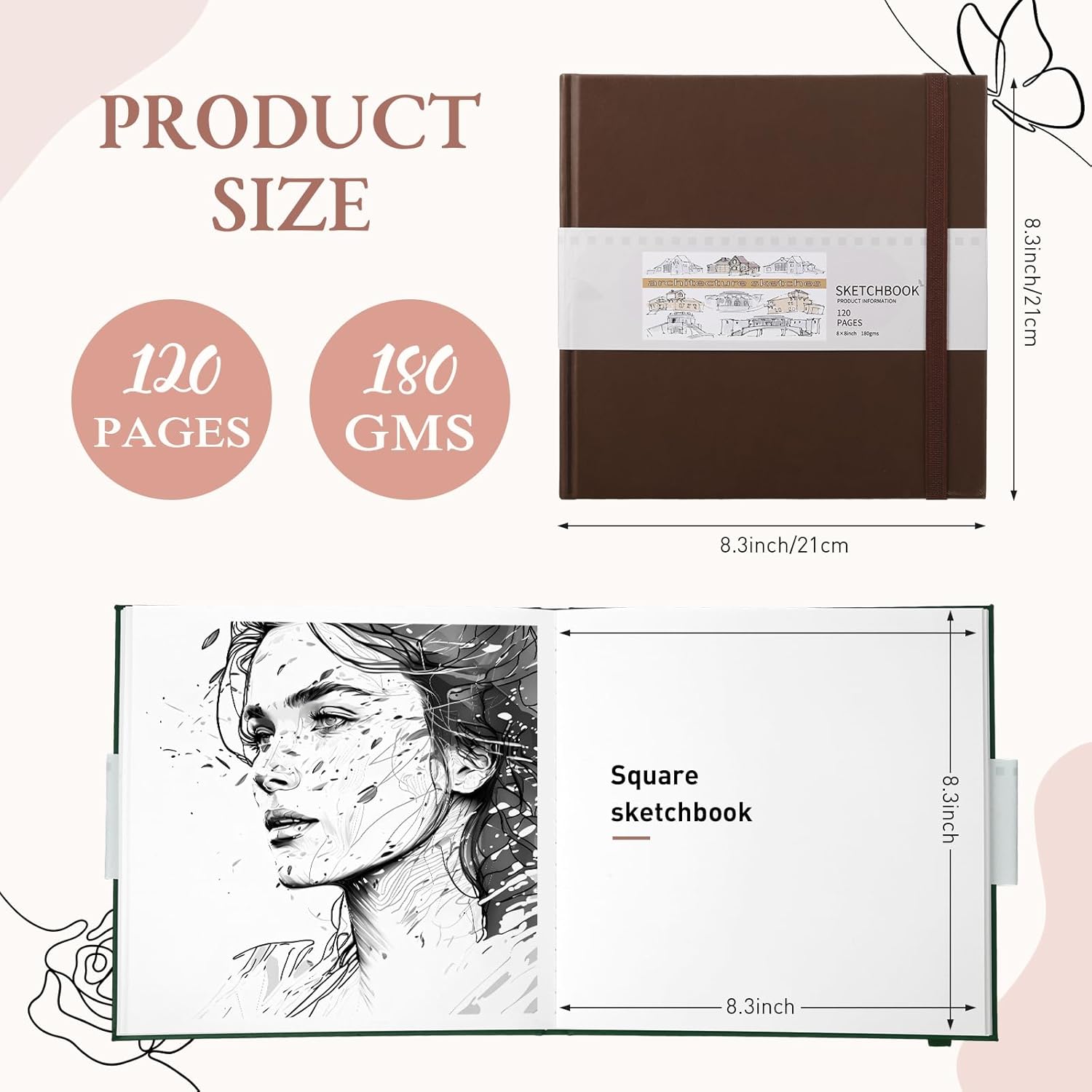 - Proper Size: with this drawing sketchbook, measuring approx. 8 x 8 inches/ 20.5 x 20.5 cm, it provides a sizable paper while being compact enough for easy portability and writing; Coupled with thick, 180 GSM papers, the sketchbook provides a nice balance for drawing, yet is lightweight for convenient carrying