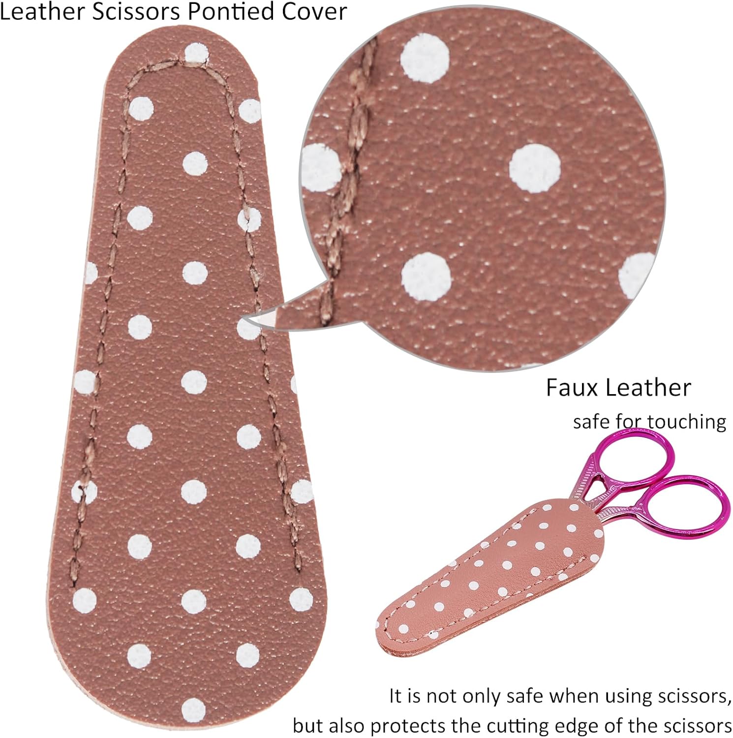 - Scissors with cover:1pc small sewing scissors and leather scissors safe cover. suitable to be as a delicate gift for friends or families who love embroidery, DIY working, and keep children away from scissors.