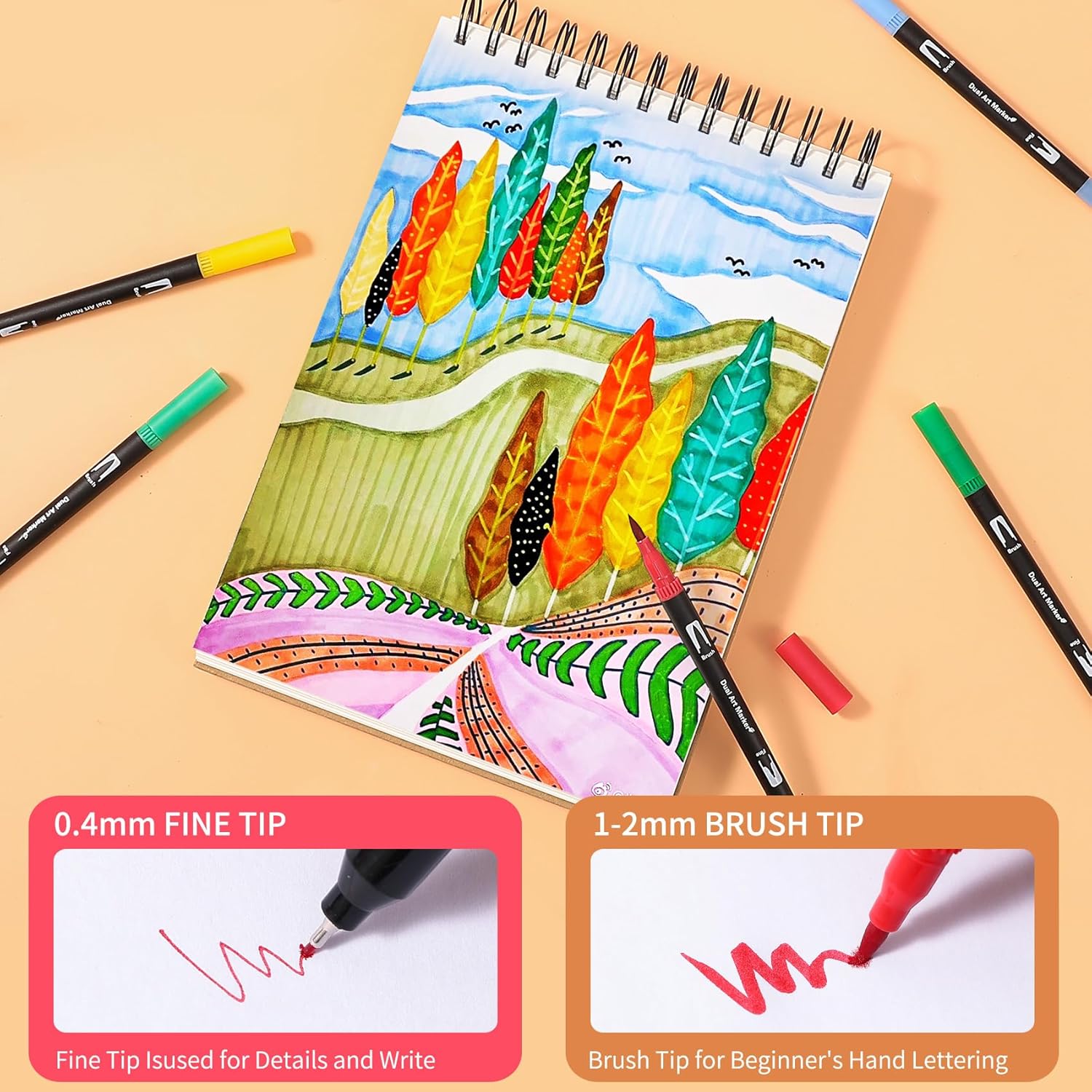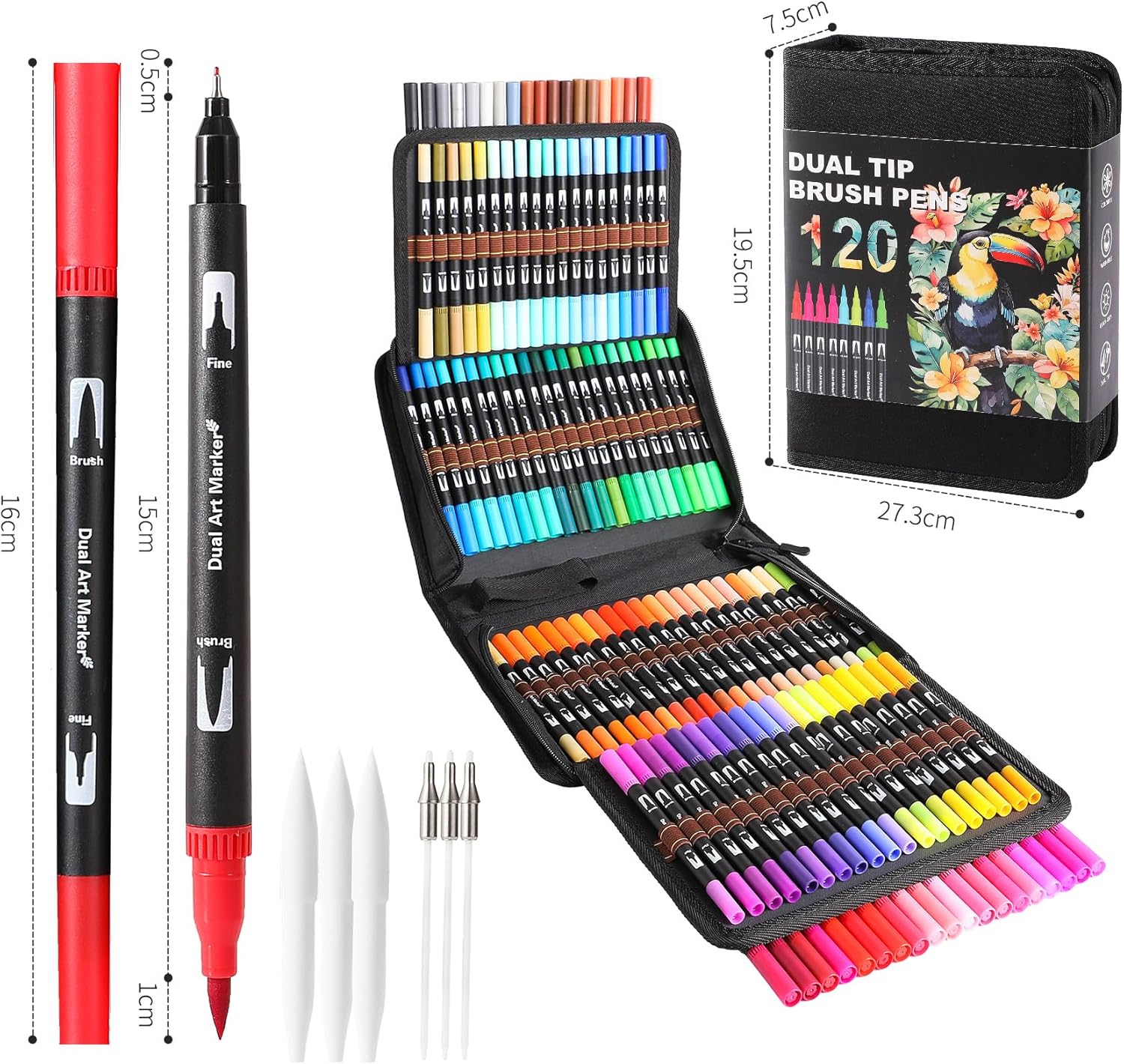 Dual Tip Markers, Double Brush Art Markers Set with Fine Tip and Brush Tip for Adult Coloring Book, Hand Lettering, Calligraphy & Drawing, Art Supplies Kit for Kids and Adults (120 Colors)