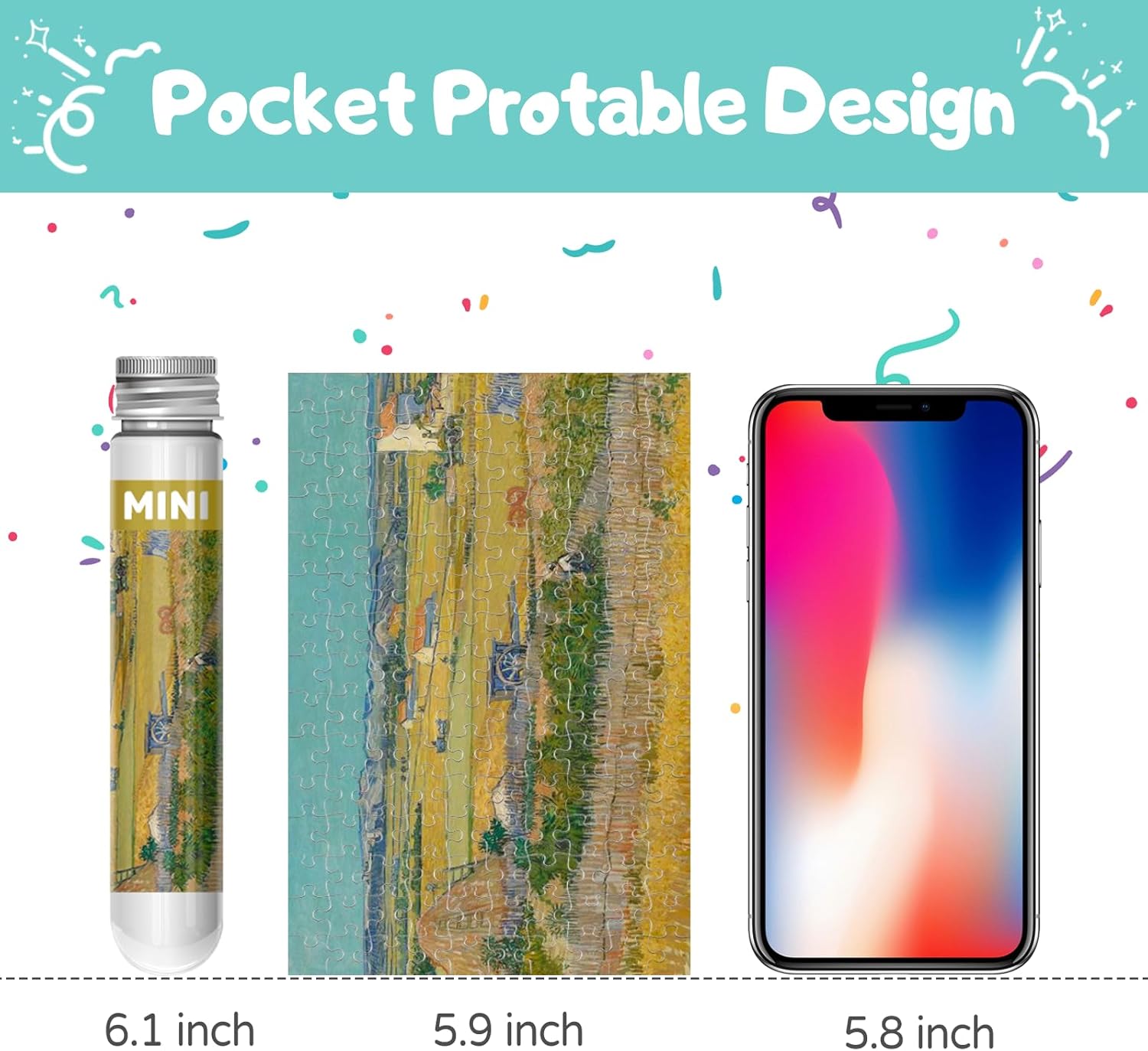 150 Pieces Mini Jigsaw Puzzles for Adults & Kids, 6" x 4" Small Jigsaw Puzzles Capsule Tube Jigsaw Puzzles Intelligent Game, Wheat Field with Cypresses Irises The Harvest (Wheatfields) 3 Pack