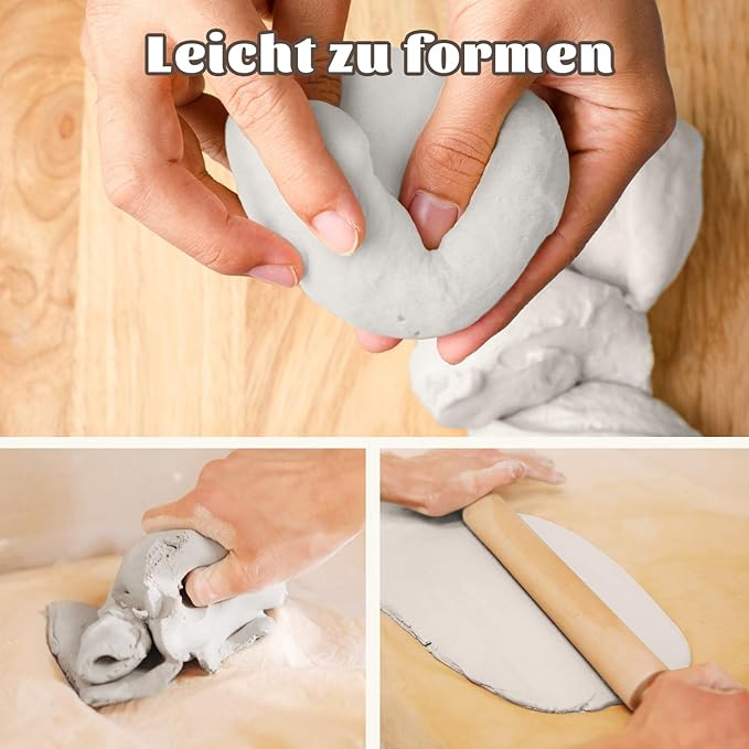 - Certified Safe & Premium Material:Craft with confidence! Our air dry clay for adults is certified to be non-toxic and safe. It's soft, easy to mold, and air-dries naturally to a durable finish within 24-48 hours without the need for baking or kiln.