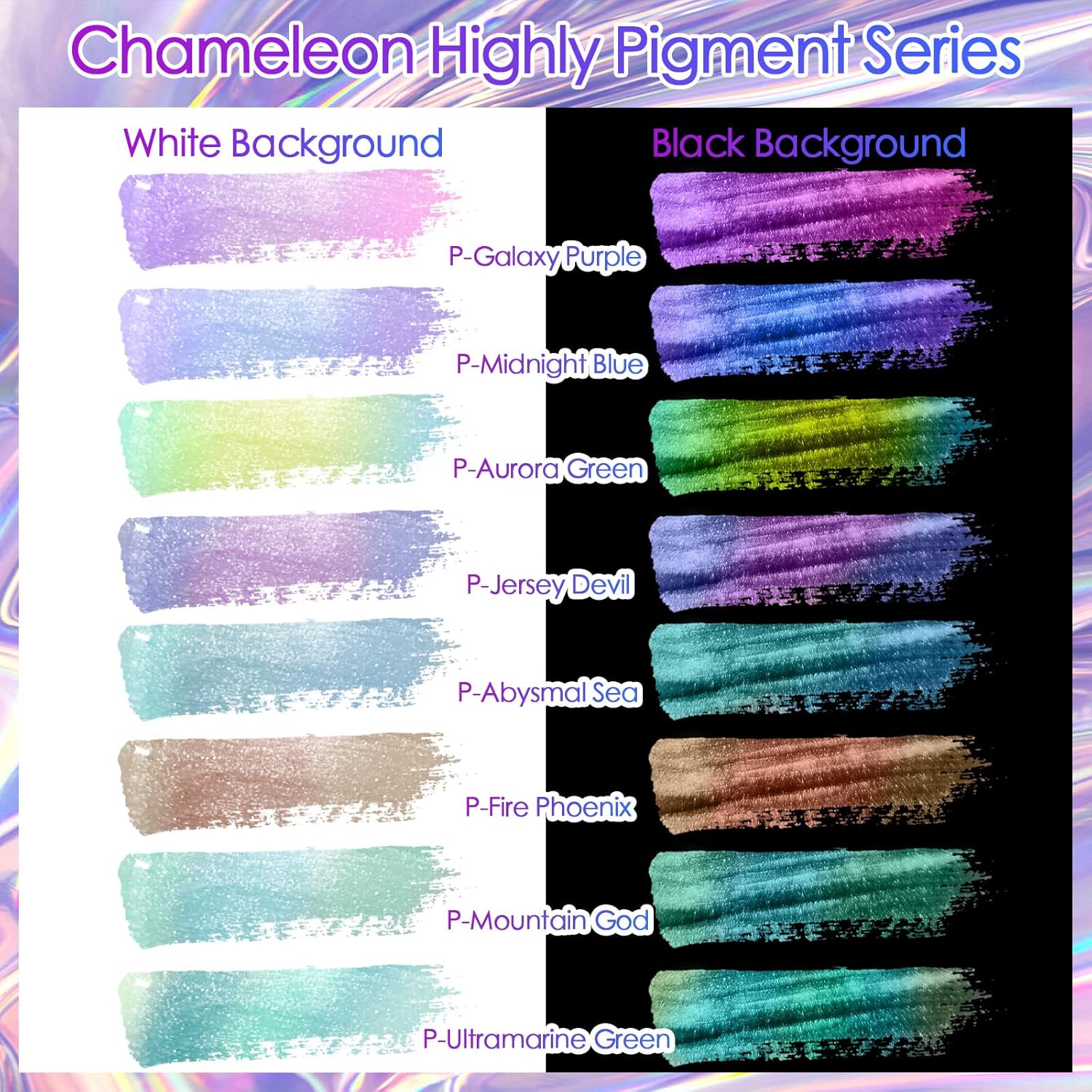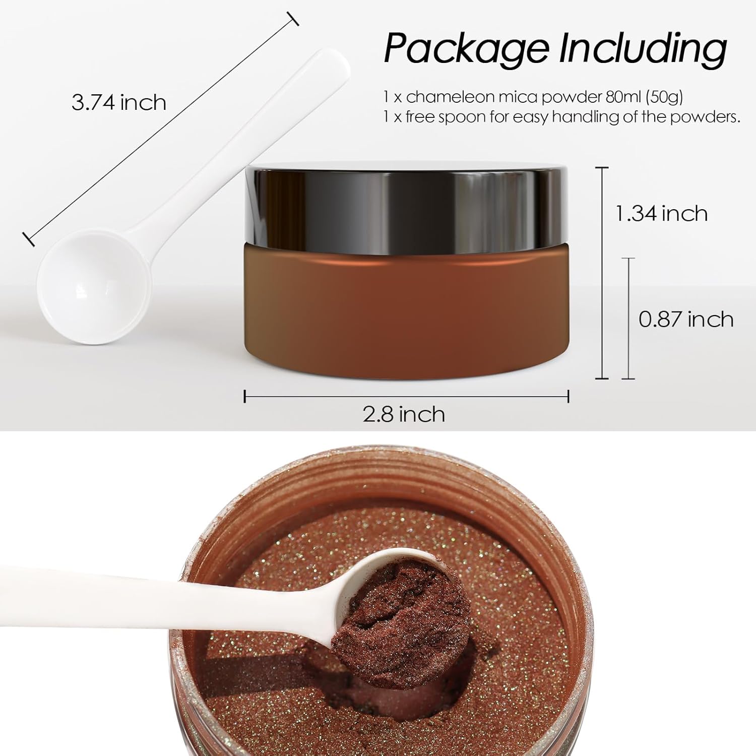 - ✨Highly Chameleon Mica Powder: Appearance is color mica powder defined by light refraction, reflection, and transmission to show color. A sparkly colorant pigment that has fire phoenix hues when mixed into clear epoxy resin. These micas will elevate your resin projects in a subtle color shift all while remaining pearlescent.
