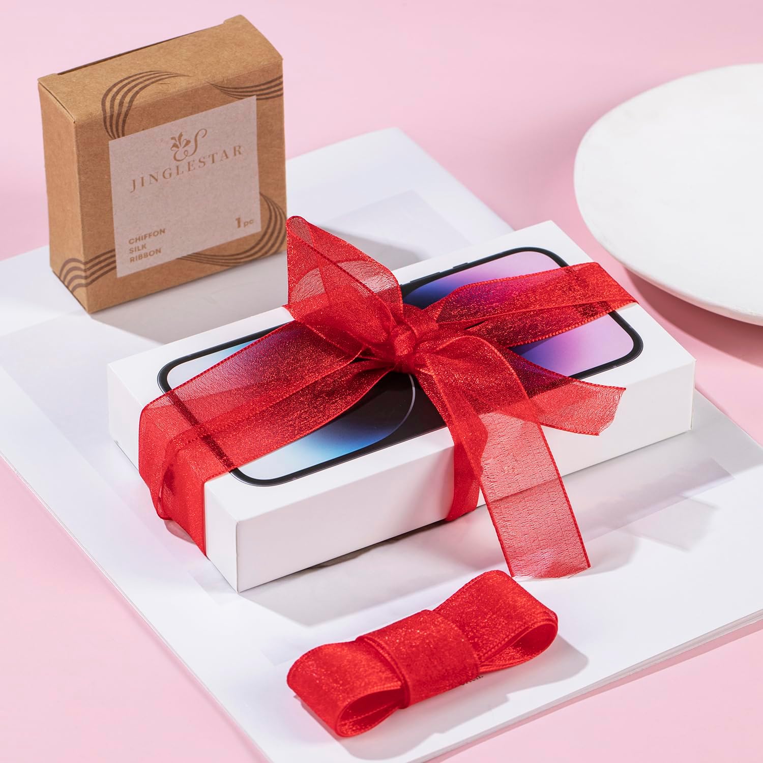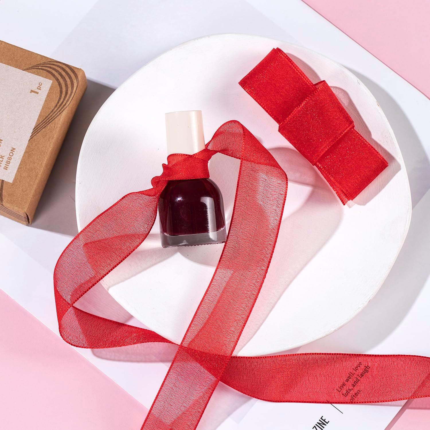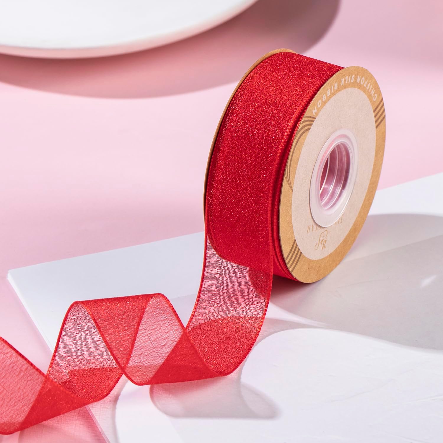 1 Inch Wide Sheer Chiffon Ribbon - Pearl Silk Woven Ribbon Suitable for Gift Wrapping, Wedding Decor, Home Decor, Girl Hair Accessories Handmade DIY (25 Yards/roll) (Red)