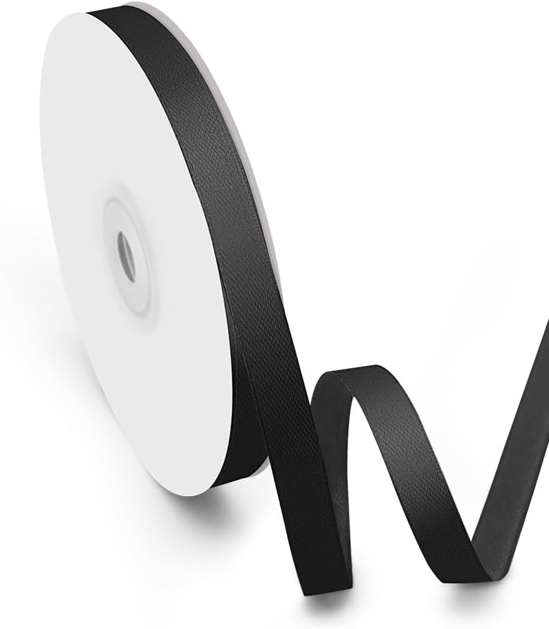 3/8" Width x 50 Yards Satin Fabric Ribbon, Thin Black Ribbon Perfect for DIY Bows, Swags, Gift Wrapping, Craft, Flower Bouquet,Christmas and Halloween Party Decoration