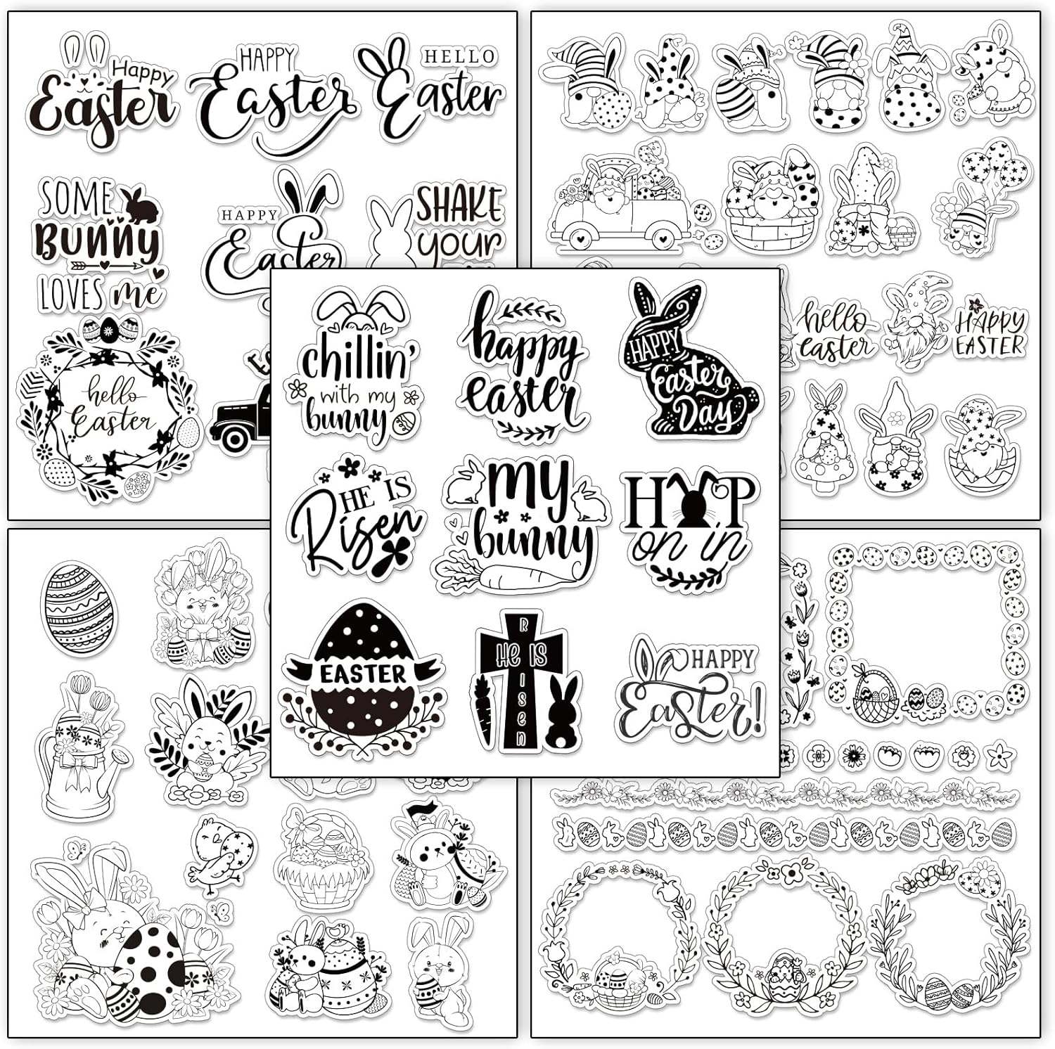 Whaline 5 Sheet Easter Clear Stamps Bunny Rabbit Egg Gnome Words Silicone Transparent Stamps Border Rubber Stamp Cards for DIY Crafts Card Making Scrapbooking Album Supplies