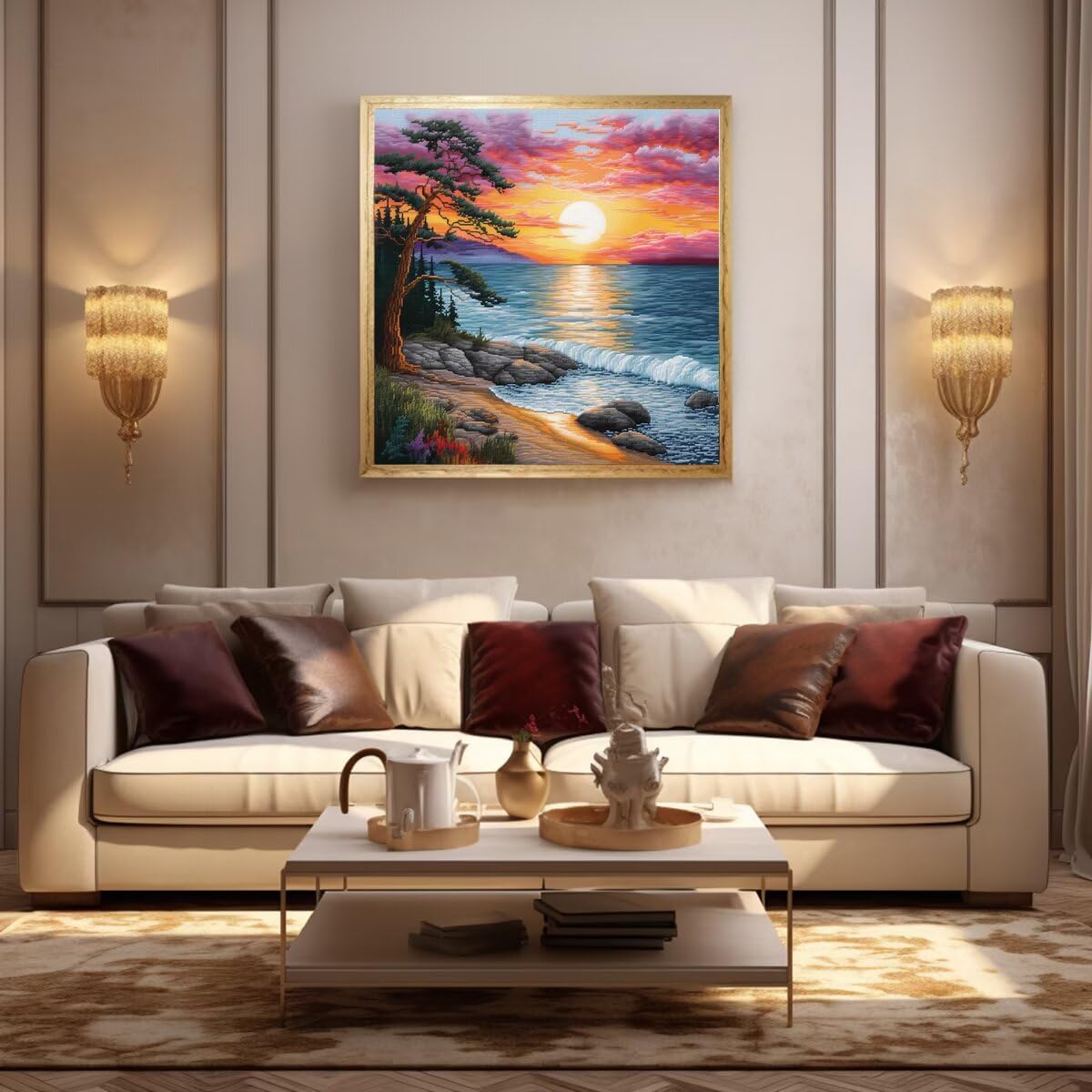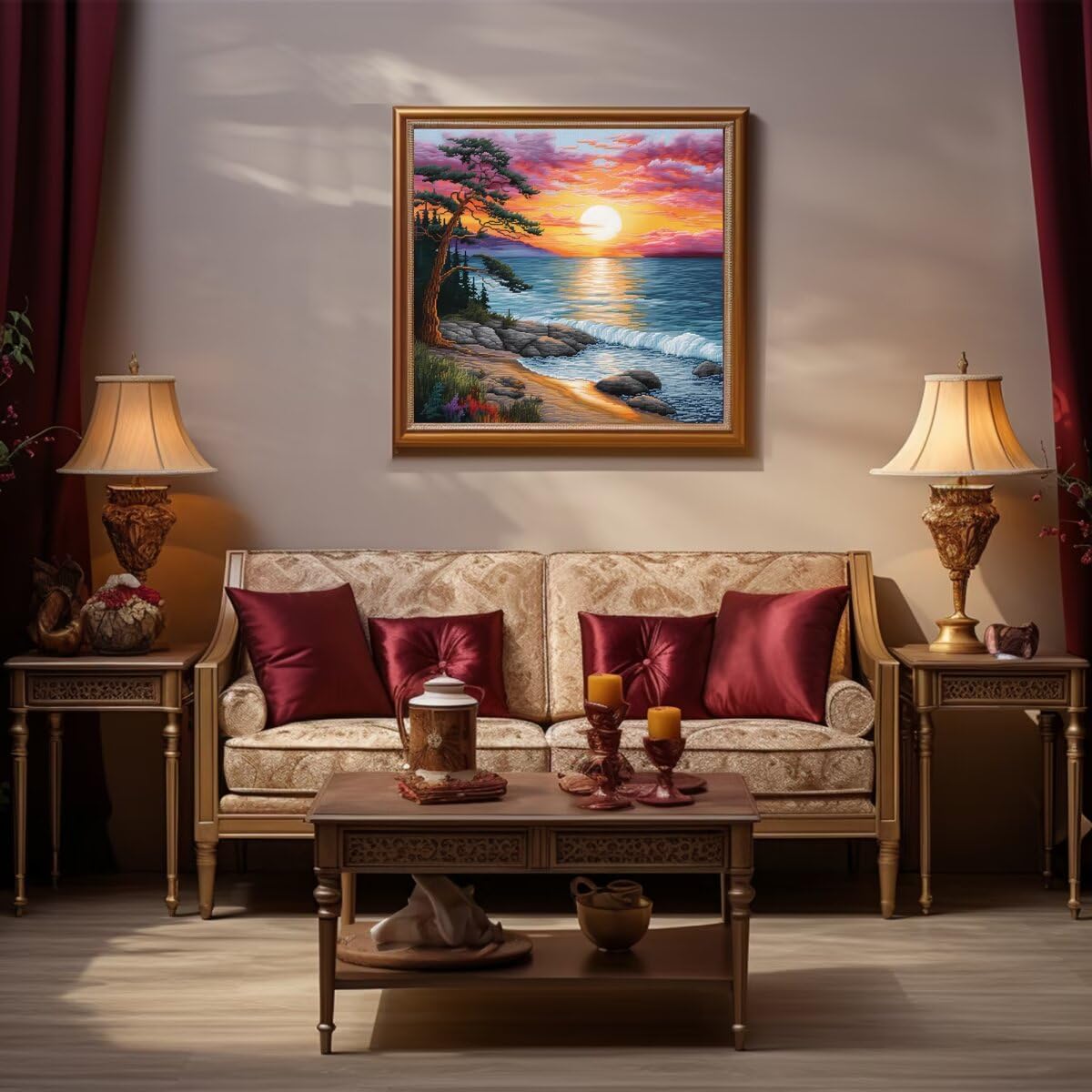51buyoutgo 11CT Stamped Cross Stitch Kits for Adults - 16x16 in Beginner Embroidery Kit with Easy Funny Washable Seaside Landscape Pattern, Pre Printed Fabric for DIY Home Decor, Gifts, Stress Relief