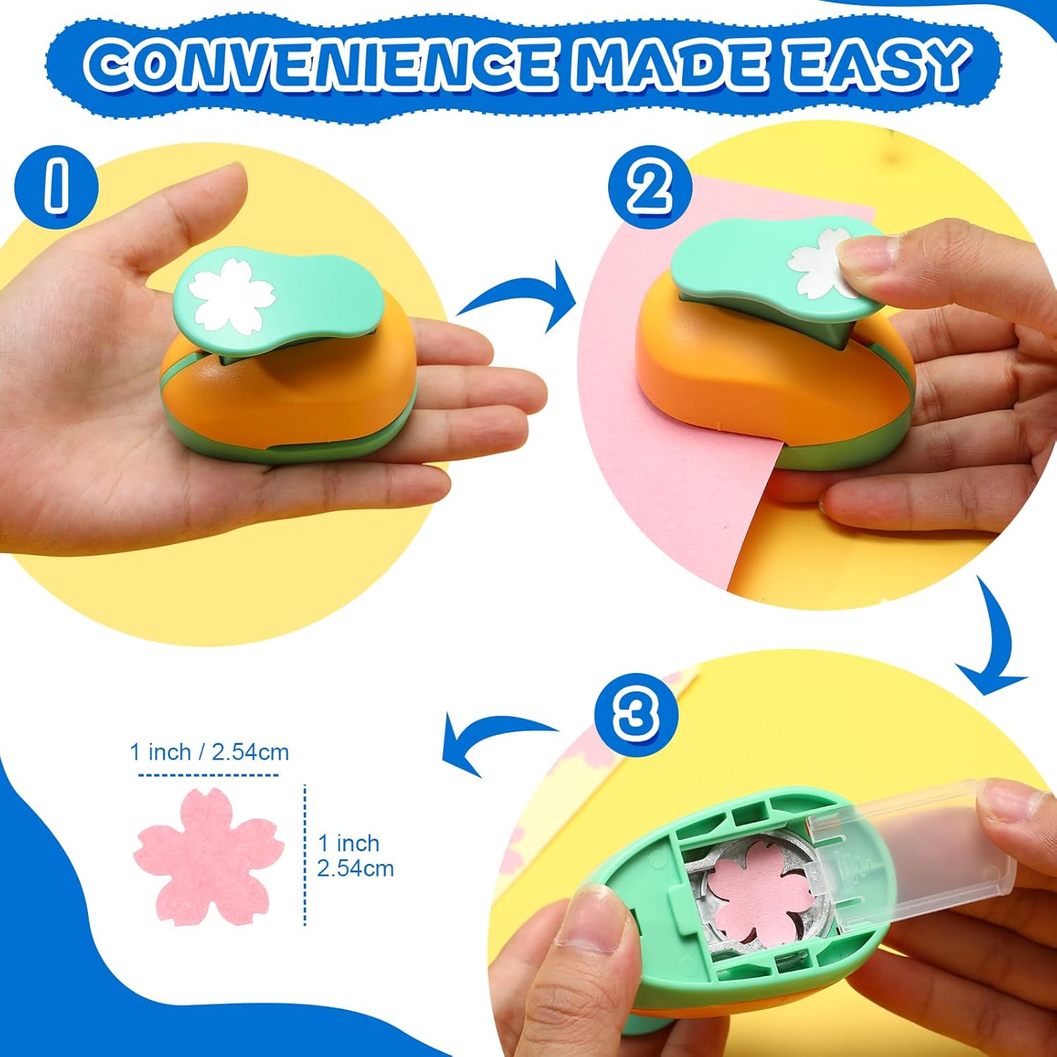 - Suitable Size for Crafts: the shape cutters for paper are about 2.76 x 1.77 x 2.2 inches/ 7 x 4.5 x 5.6 cm, and the patterns cut by hole punches are about 1 inches, which are very suitable for children's crafts, so they can use the hole punches to cut out various exquisite patterns, cultivating their abilities