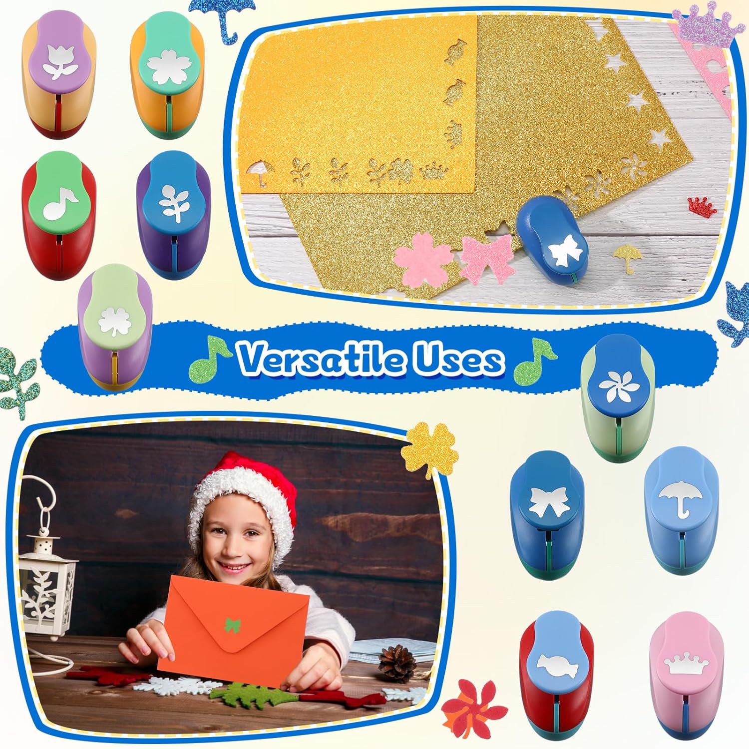 - Versatile Uses: the paper punch set is a multi purpose tool that offers versatility for your crafts; You can cut out the shapes through combination, paste, painting and other ways, and then combined with the pen, to complete exquisite unique paintings, greeting cards, accounts, gift packaging, envelopes and other crafts; Use them on different materials such as thin plastic, foil, cardstock, and so on