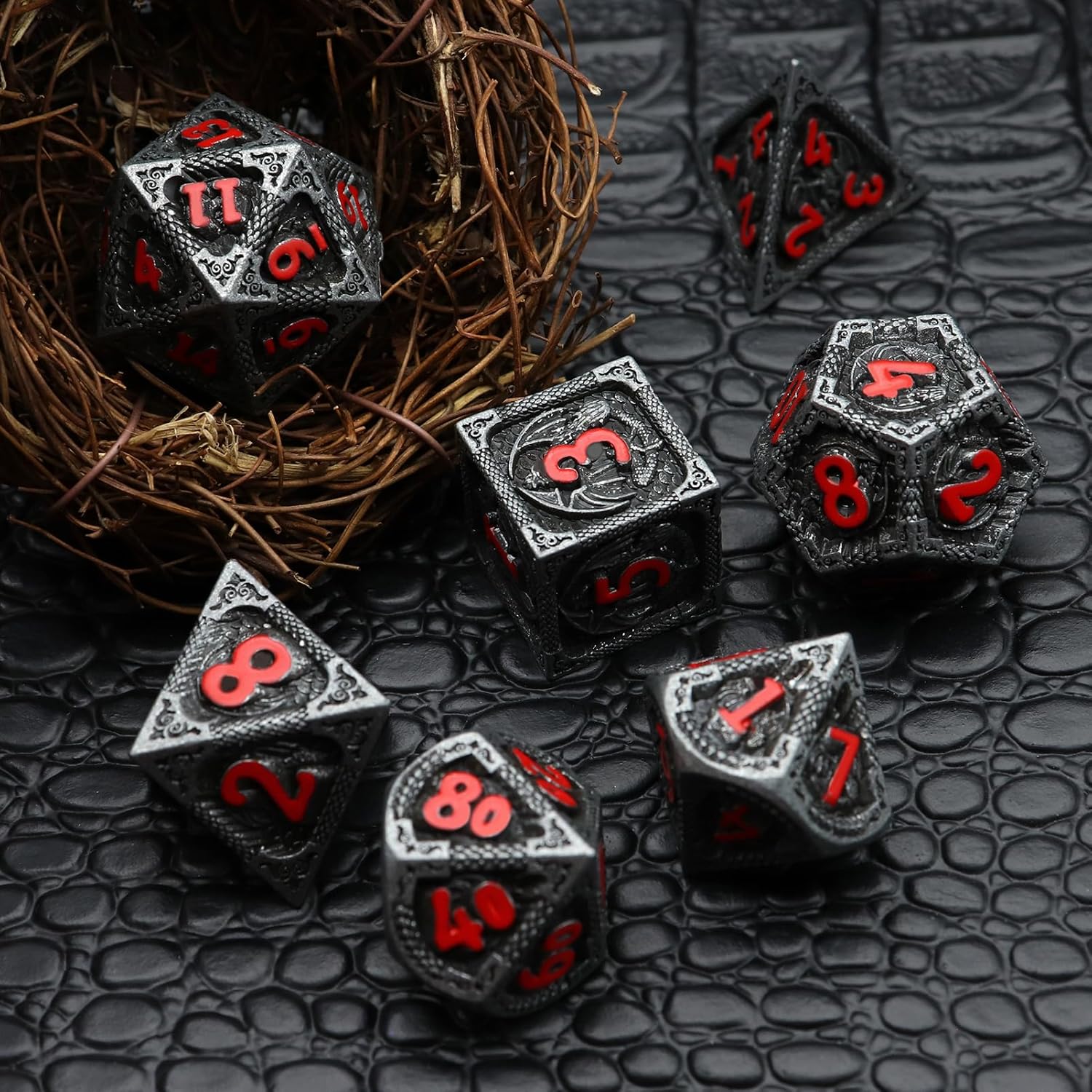 - Haxtec Original Design Metal DND Dice Set: Innovative Exclusive 7pcs unique dragon metal dice for dnd, cthulhu and other RPGs