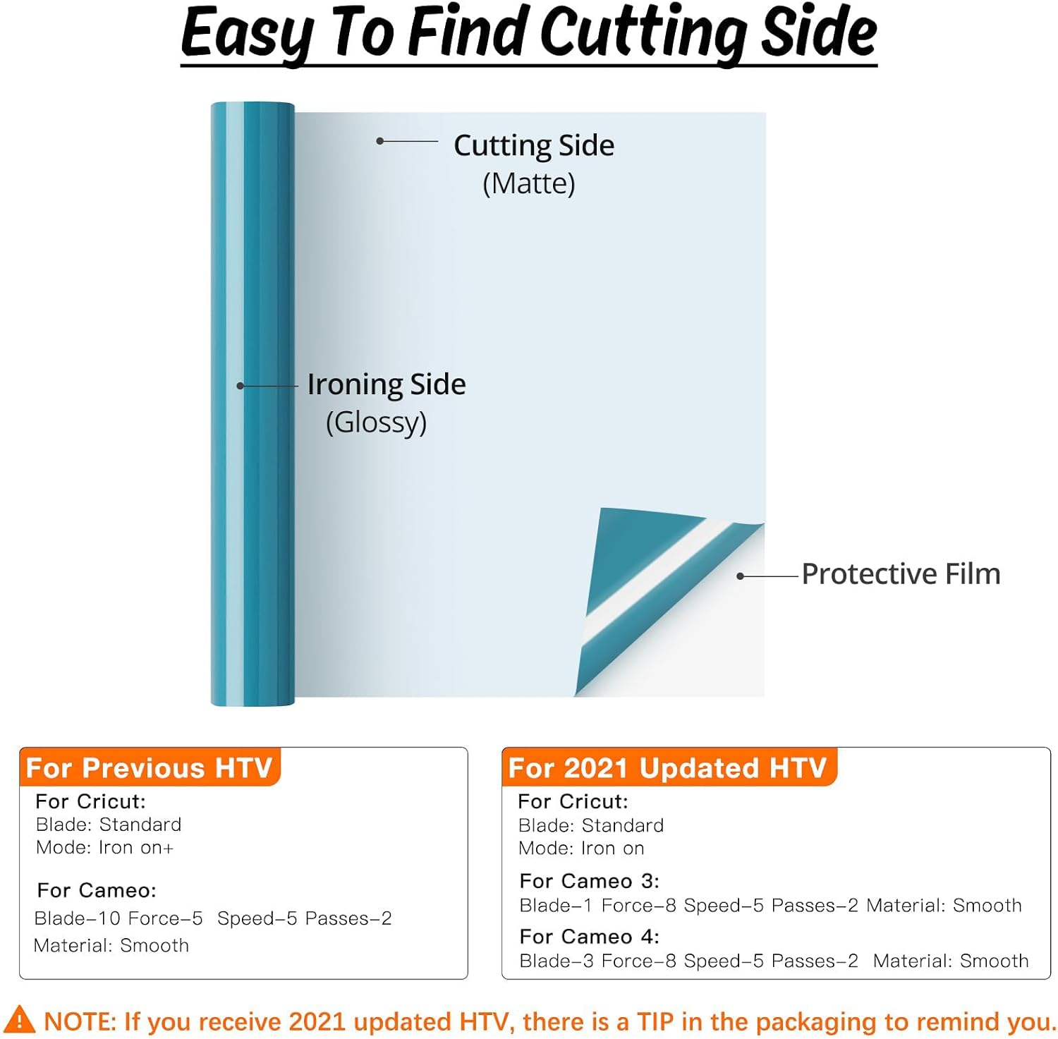 - 【12 inches x 5 Feet】 HTVRONT htv vinyl rolls are easy and convenient to cut into different size of art designs or logos or letters and perfect for 12x12" and 12x24" cutting mats. Our iron on vinyl are compatible for all cutter machines