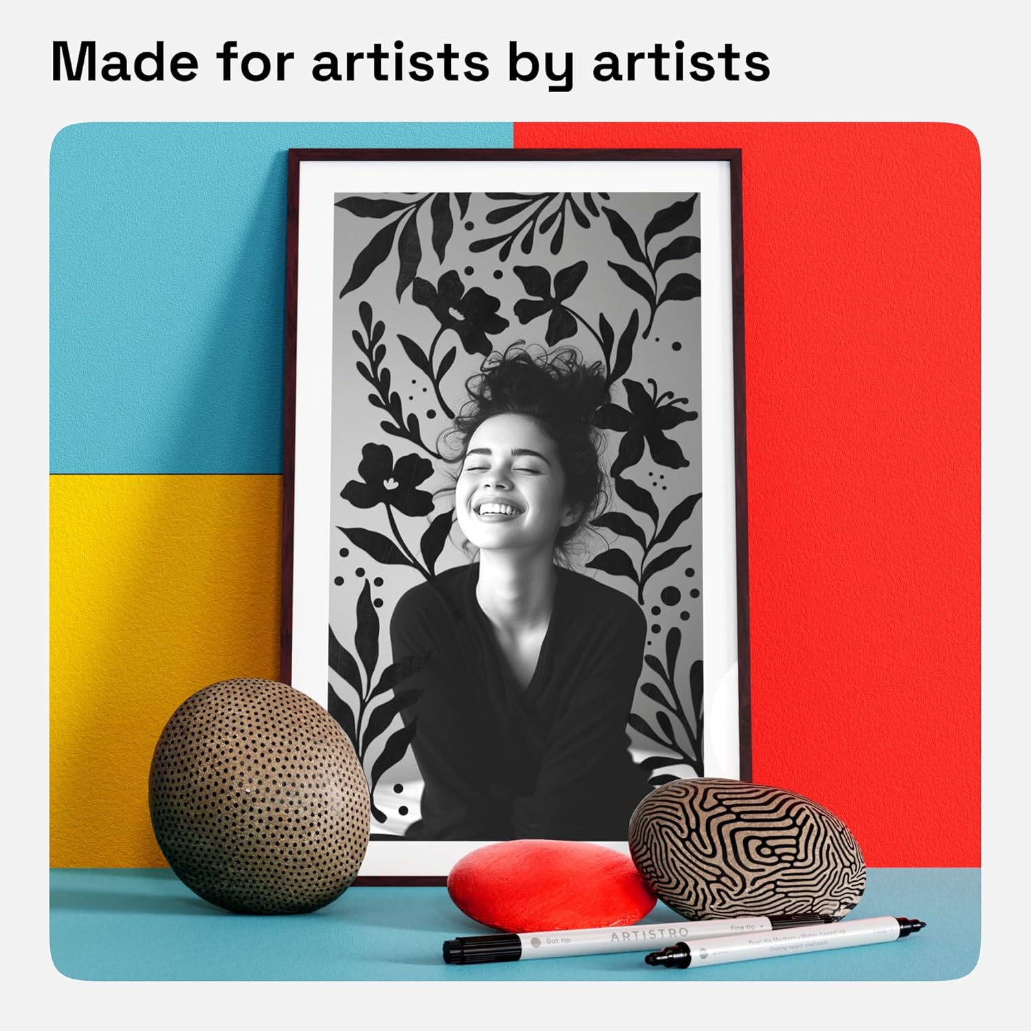 ARTISTRO 2 Black Dual-Tip Acrylic Paint Pens - Multisurface Markers for Glass, Rock, Fabric, Wood, Plastic & More - 5mm Dot + 1mm Fine Tips