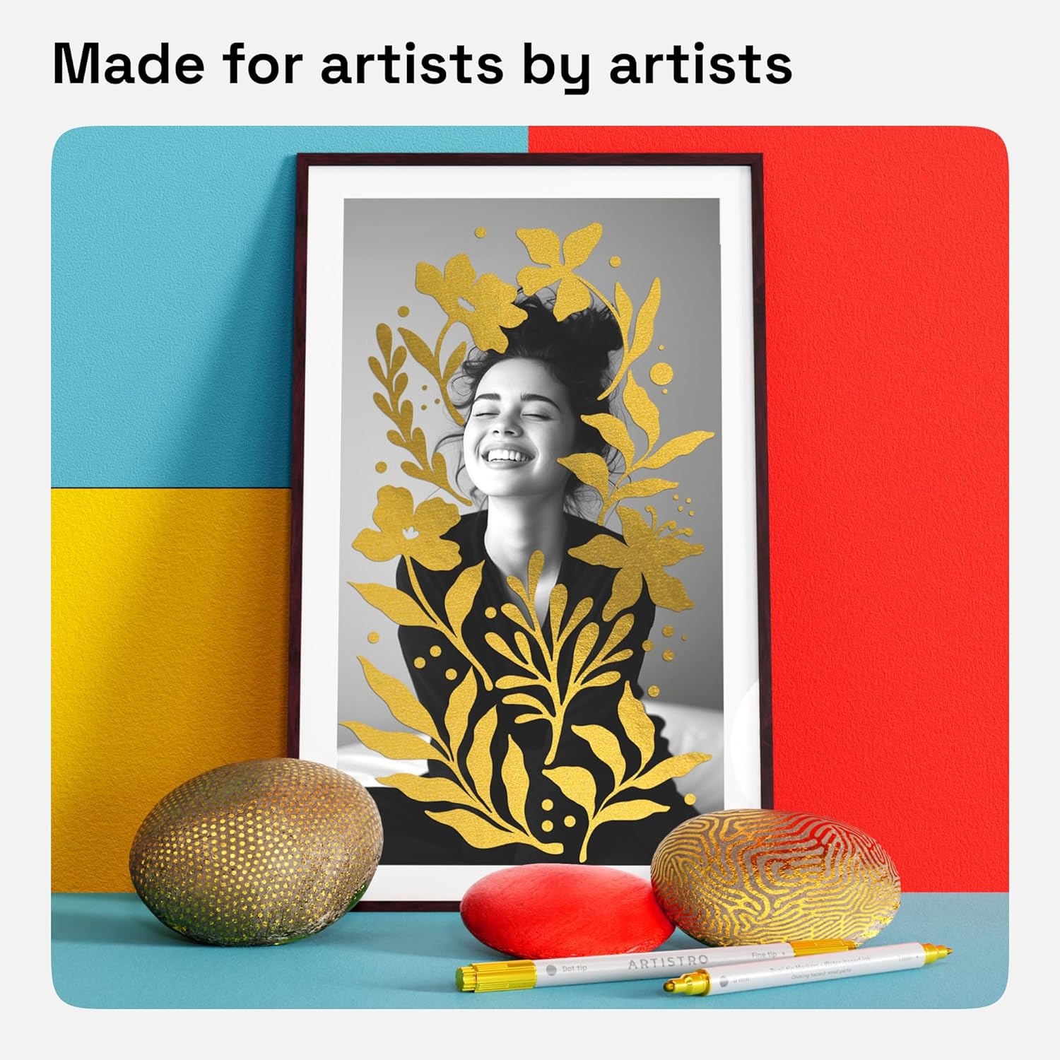 ARTISTRO 2 Gold Dual-Tip Acrylic Paint Pens - Multisurface Markers for Glass, Rock, Fabric, Wood, Plastic & More - 5mm Dot + 1mm Fine Tips