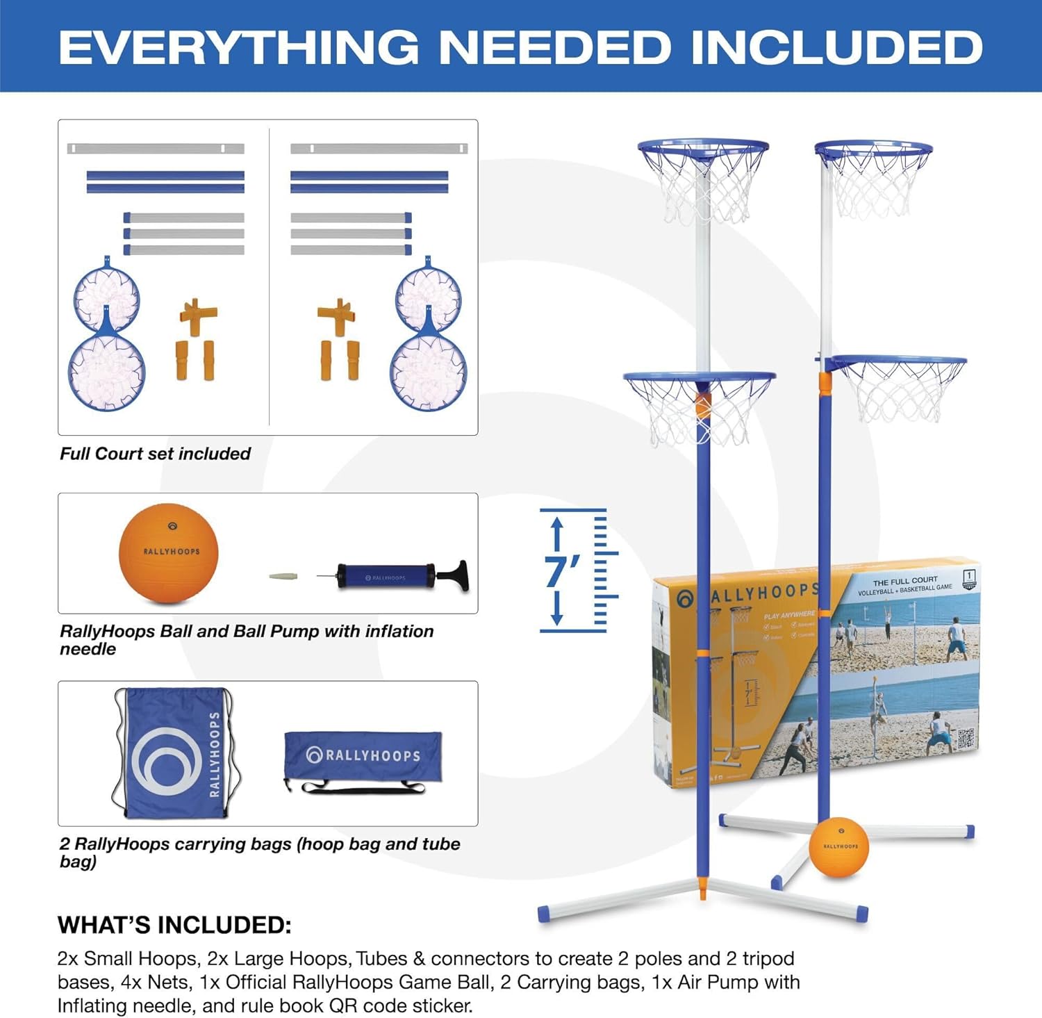 - INNOVATIVE DUAL-SPORT ACTION: Experience the world's first game that mashes together the best of volleyball and basketball! RallyHoops 7 FT delivers fast-paced, high-energy play that challenges your athleticism while providing endless fun for players of all ages.