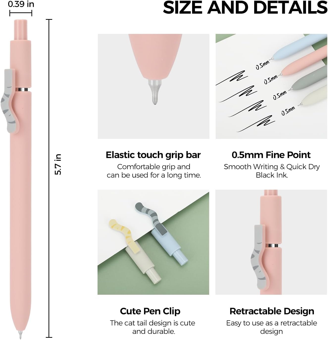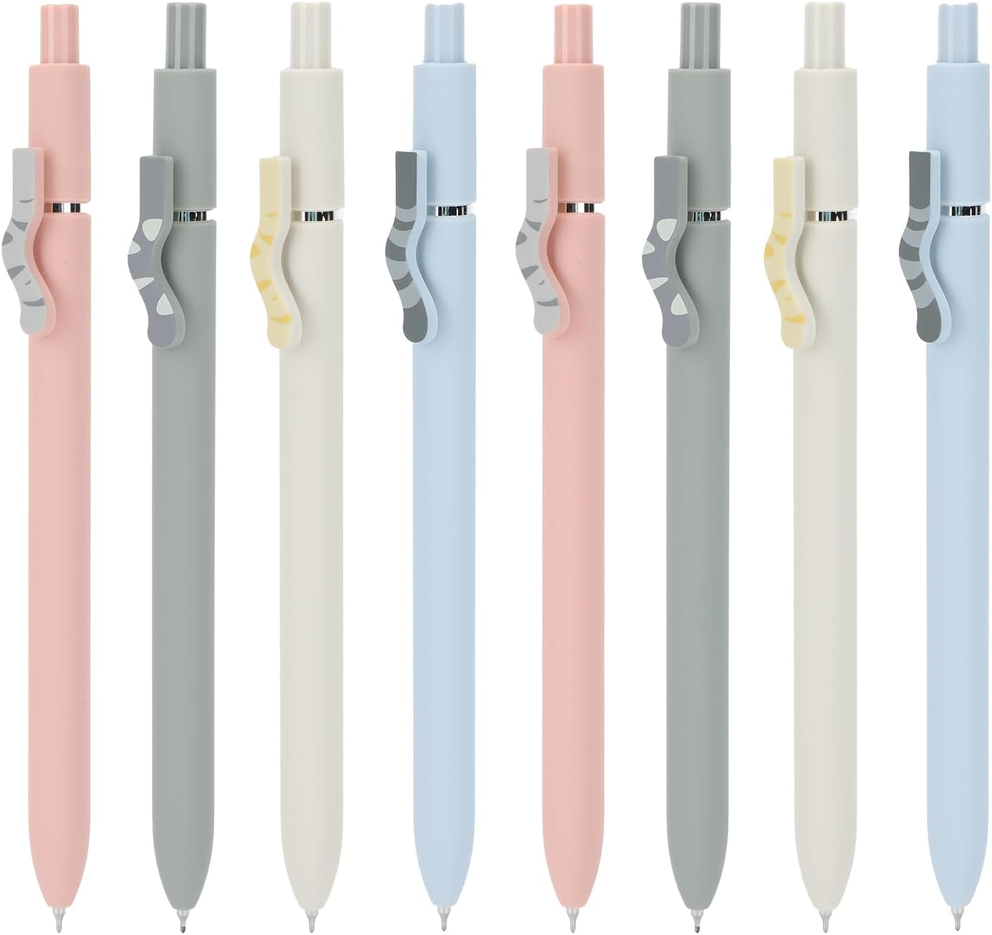 Ddaowanx Cute Cat Pens,8 Pcs 0.5mm Quick Dry Black Ink Gel Pens Fine Point Smooth Writing Pens,Cat Lover Gifts for Women Men