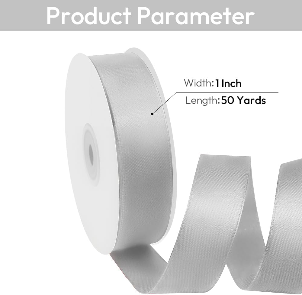 1" Width x 50 Yards Satin Fabric Ribbon, Silver Ribbon Perfect for DIY Bows, Swags, Gift Wrapping, Craft, Flower Bouquet,Christmas and Party Decoration