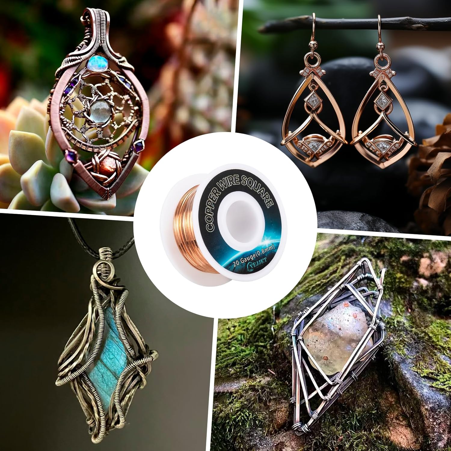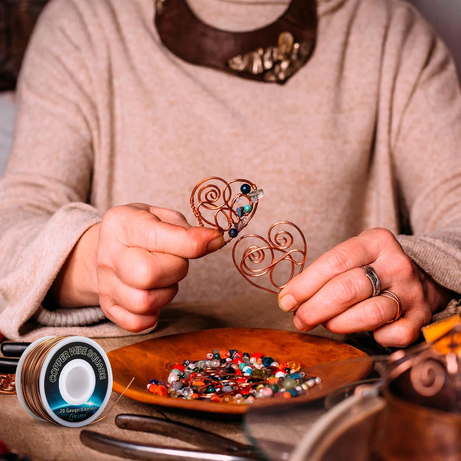 20 AWG Square Copper Wire - 0.8x0.8mm Thin Craft Wire, 30ft - Fine Jewelry, Wire Crochet, and Micro Electronics