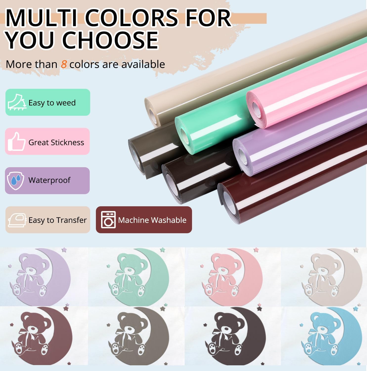 - 💦Strong Adhesion & Machine Washable💦: The fluffy heat transfer vinyl has strong adhesion, durability, and can be machine washed repeatedly. The Beige Iron on vinyl will not fall off, crack, or fade. Please wait 24 hours after the first cleaning. , turn the shirt inside out when washing.