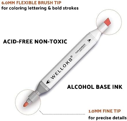 - COLOR CODED CAP & CARRYING BAG: The color-coded caps allow for ease in organization and to identify colors quickly. Improved caps for better fit-in to reduce ink volatilization. Equipped with a beautiful form-fitting black carrying case perfect for traveling and storing