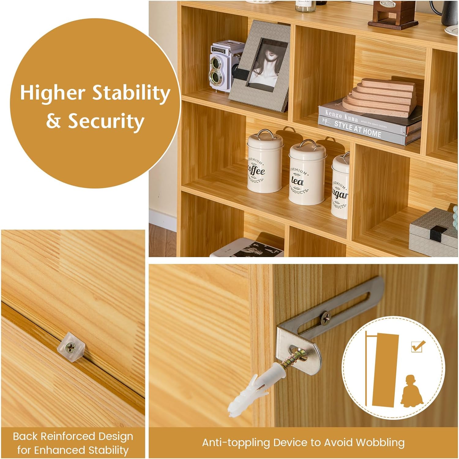 Giantex 8 Cube Bookcase, Freestanding 3-Tier Open Bookshelf, Modern Storage Display Cabinet, Wood Cube Storage Organizer for Living Room, Kid’s Room, Burlywood