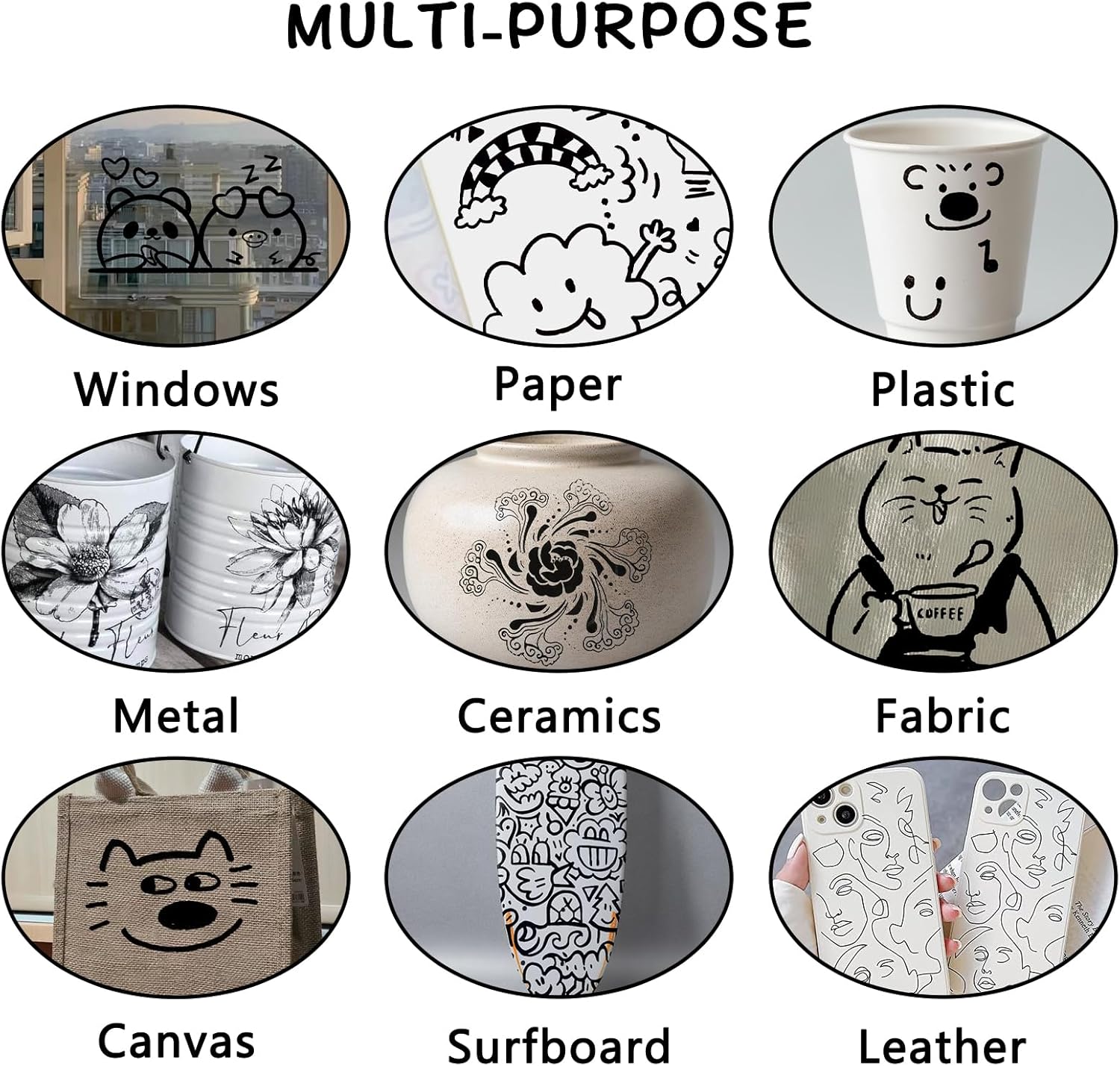 - Artistry Without Limits: Our multi-surface markers work beautifully on glass, metal, ceramic, fabric, paper, and more. Presented in a stylish box, they make the ideal gift for artists, students, and DIY enthusiasts.