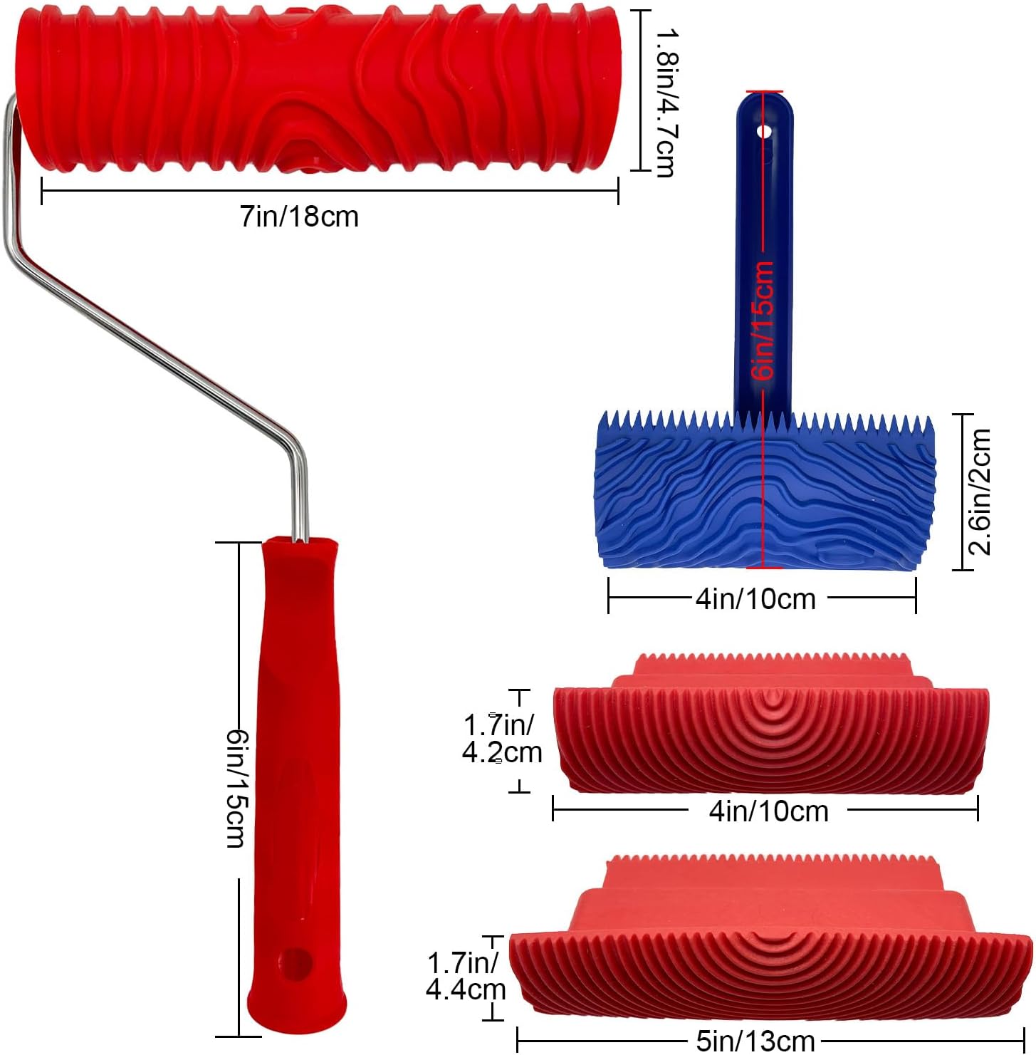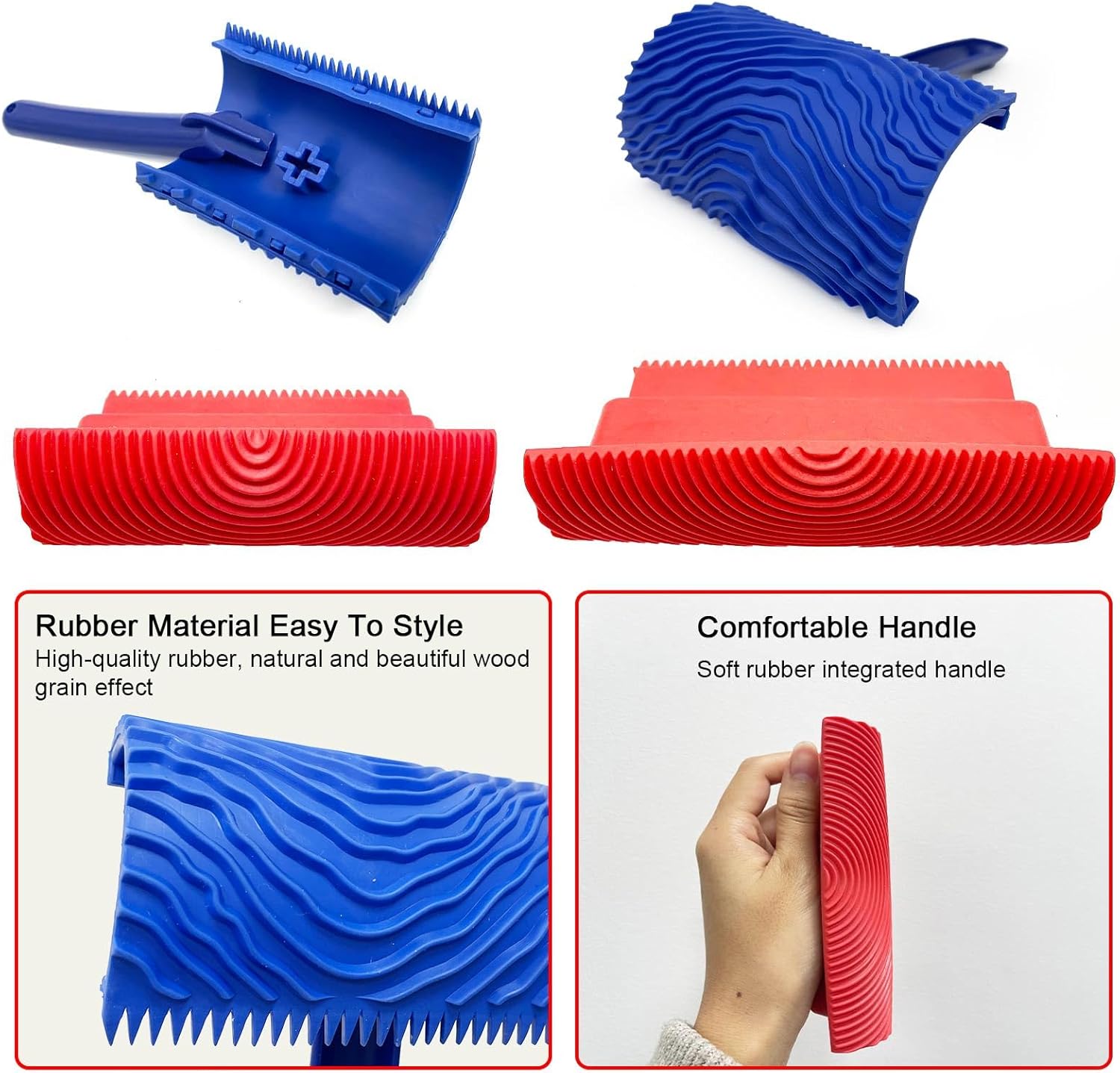 - 【PACKAGE INCLUDE】1 x 7" wood graining roller with handle; 1 x 4" wood graining rocker with handle; 2 x wood grain rubber tools