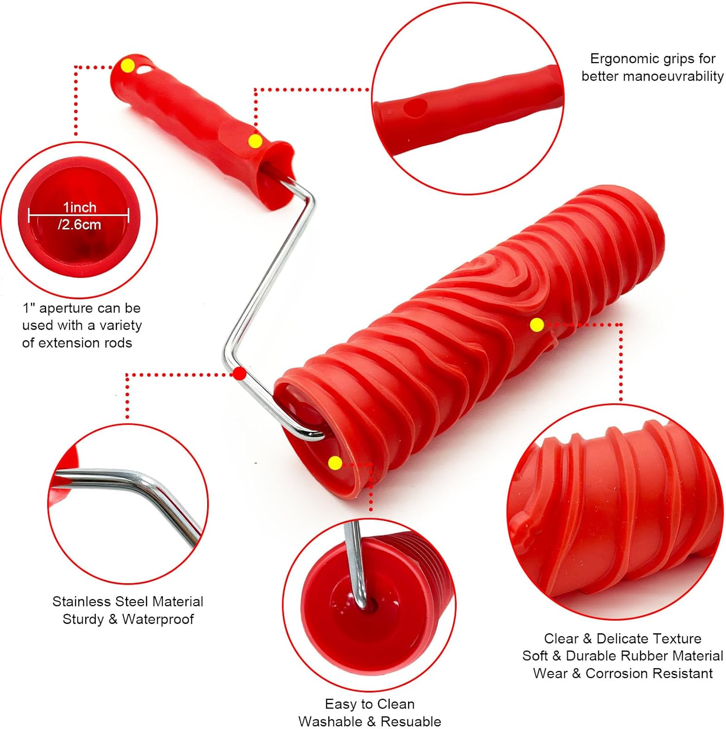 - 【REUSABLE & WASHABLE】Washable & reusable material, easily clean up with soap and water, the paint roller can be brushed, stamped, printed or sponge tested, and the soft rubber material will not damage the surface you want to paint, perfect choice for DIY Room Art Paint Decoration