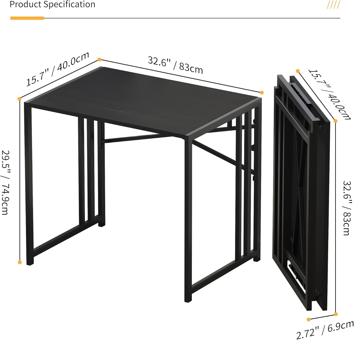 Lutown Teen Folding Computer Desk - 32 inch, Writing & Gaming, Small Space Office Desk, Black, No Assembly Required