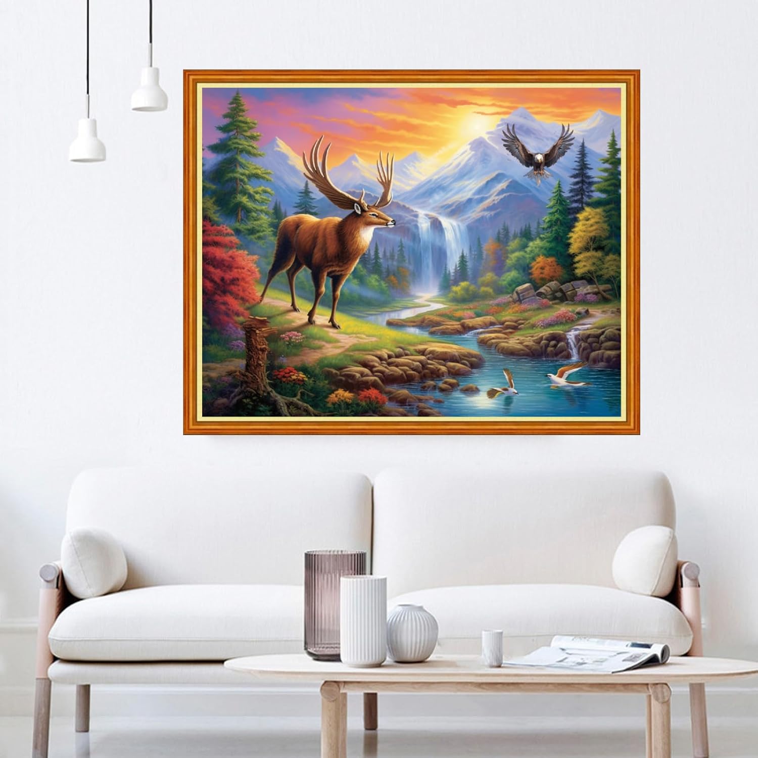 Dooxvey Cross Stitch Kit for Adults Beginners - Stamped Needlepoint Embroidery Pattern, Lucky Deer 16x20 Inch, 11CT