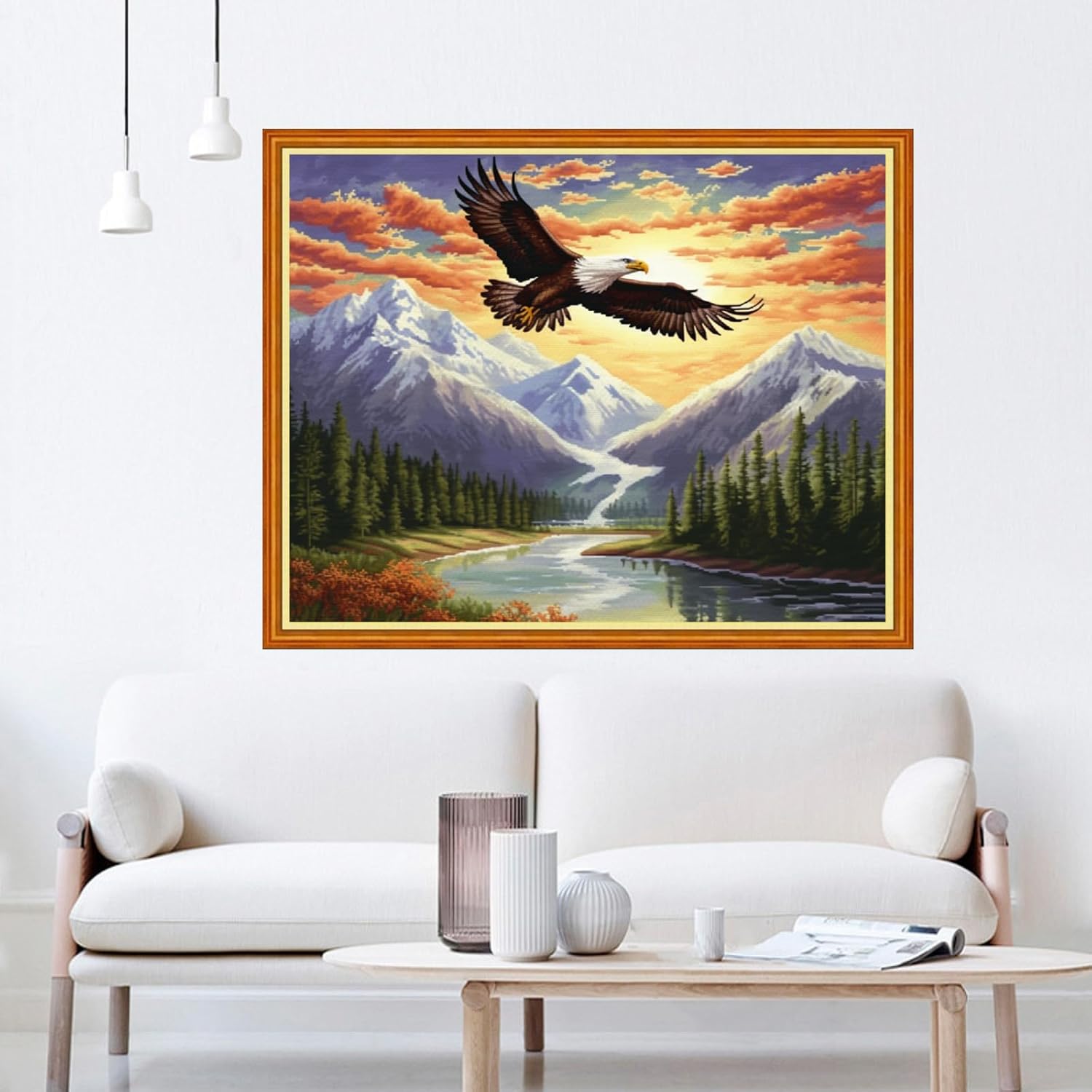 Dooxvey Cross Stitch Kits for Adults Beginners,Full Range of Cross-Stitch Stamped Kits Needlepoint Kits for Beginners Embroidery Kits 11CT Cross Stitch Patterns-Sunrise Eagle 16x20 inch