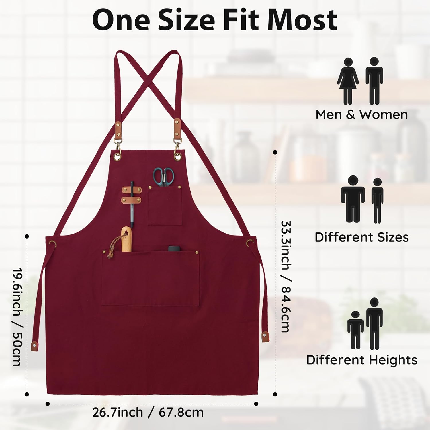 - ONE SIZE FITS MOST : The work aprons feature a new cross strap design. No more neck pains with our cross strap which can easy to adjust size, soft and comfortable to wear.