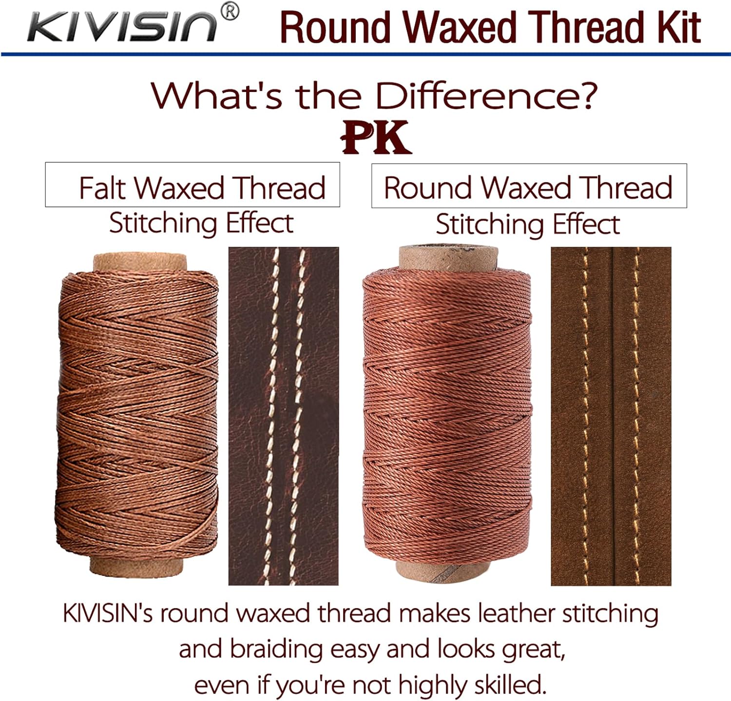 - The kit includes 7 hand sewing needles, one of which is suitable for the 0.55mm thread. The round waxed thread is easier to work with than flat waxed thread. Its variety of colors meets a wide range of needs, including for leather shoes, bags, belts, sheath, saddles, furniture, upholstery, dream catchers, macrame, burlap, key chains, footballs, baseballs, wind chimes, and pine needle baskets