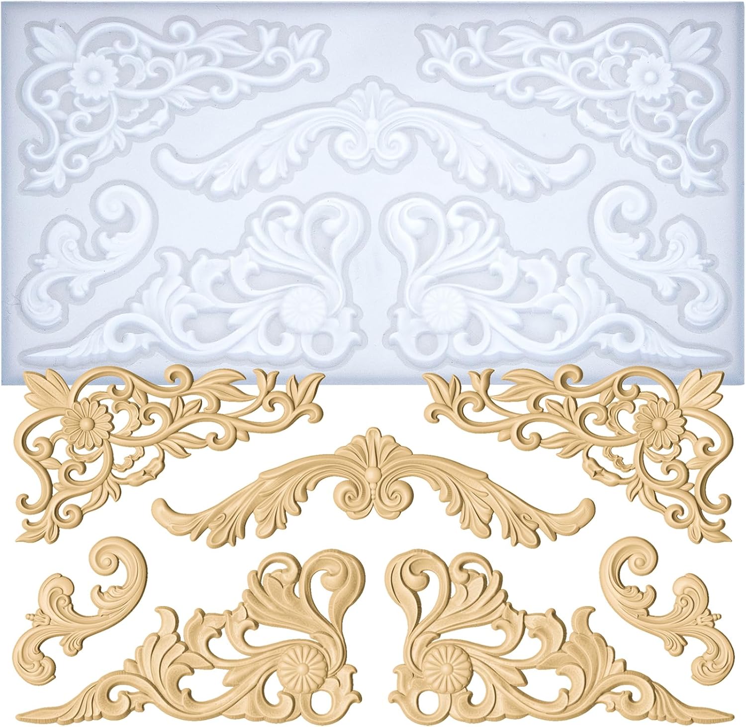 Art Molds for Polyclay Air Dry Clay Plaster Epoxy Resin Fondant Cake Decor Rococo Embellishment