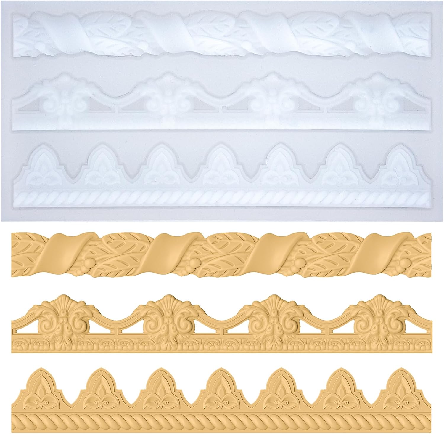 Art Molds for Polyclay Air Dry Clay Plaster Epoxy Resin Fondant Cake Decor 3 Border Trimmings