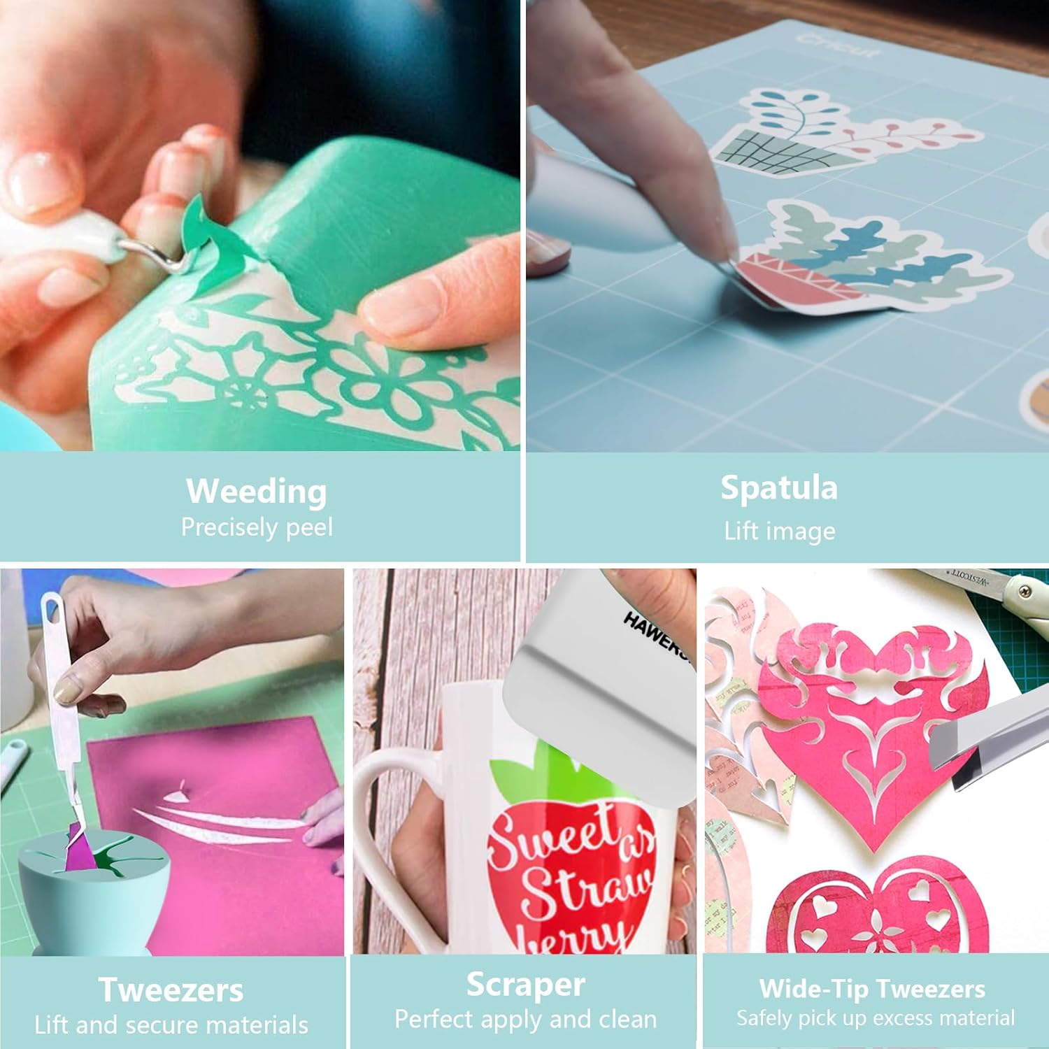 - Premium Design and User Friendly:The 12inch paper trimmer is equipped with two-way blades,it is better for precisely cutting in parallel or angles.The brayer roller can make your paper,vinyl,fabric more flatter on the cutting mat,all pens can be used for cutting machine,painting,writing,the multipurpose 7pcs weeding tools is especially suitable for craft project