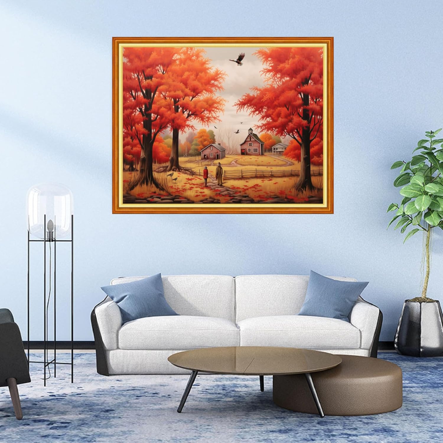 DMCVIVR Stamped Cross Stitch Kits for Adults Beginners Embroidery Kits 11CT Needlepoint Kits Cross Stitch Patterns Embroidery Patterns& Late Autumn Strolling 16x20 inch