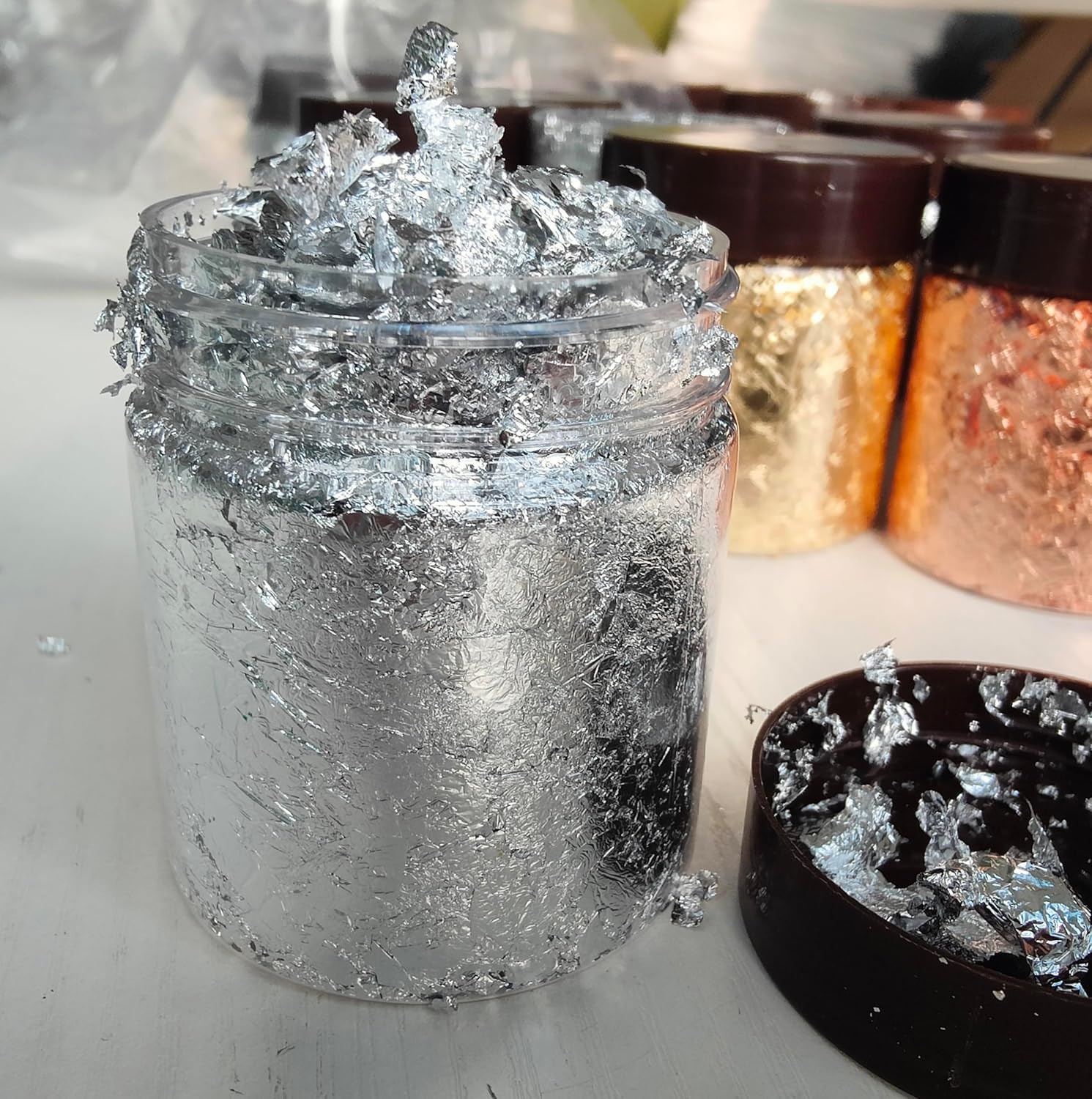 - Big Jars of Metallic Foils Flakes:Compare with other brands,JINRUISI gold foils flakes comes in big jar,you can choose the color you need instead of having to buying many different colors in very small jars that you do not need.