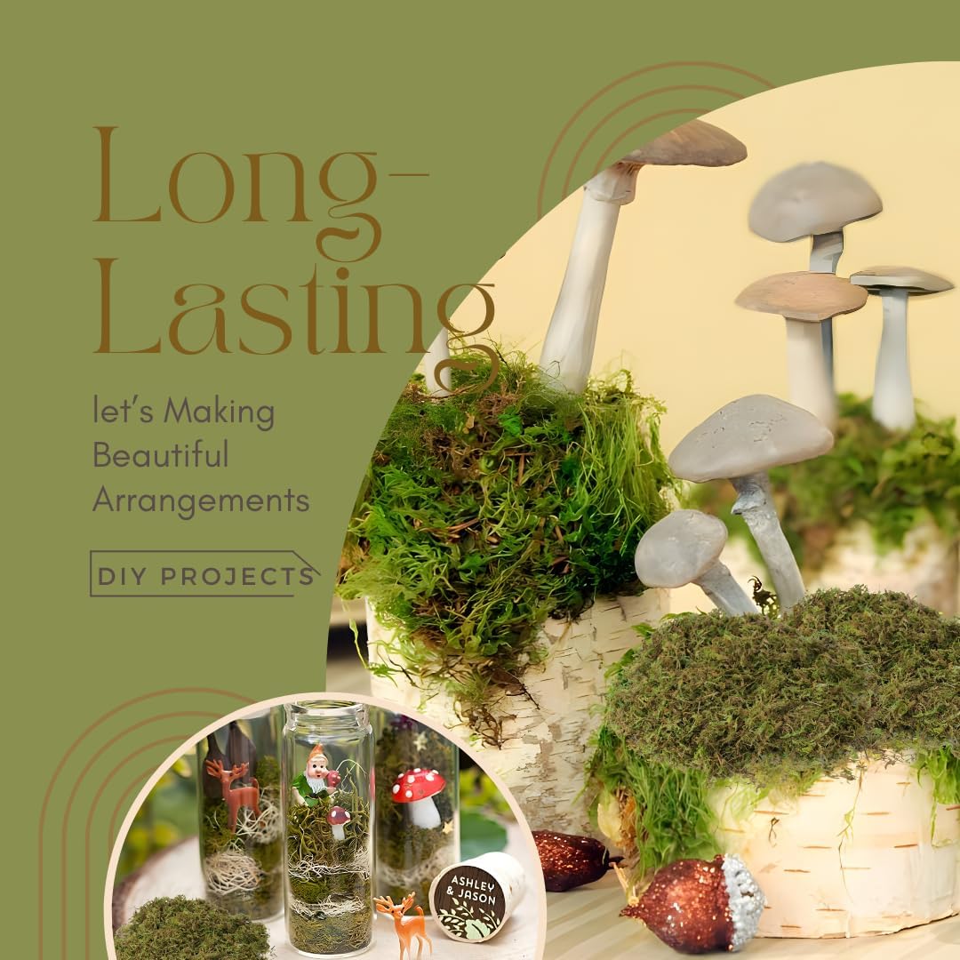 - Easy to Use: No water needed and evergreen. Just enjoy the calming beauty of our real-looking moss. It’s perfect for DIY floral arrangements, shadowbox decoration, giveaways, and more. Add a beautiful natural element to your floral creations with our artificial dried moss.
