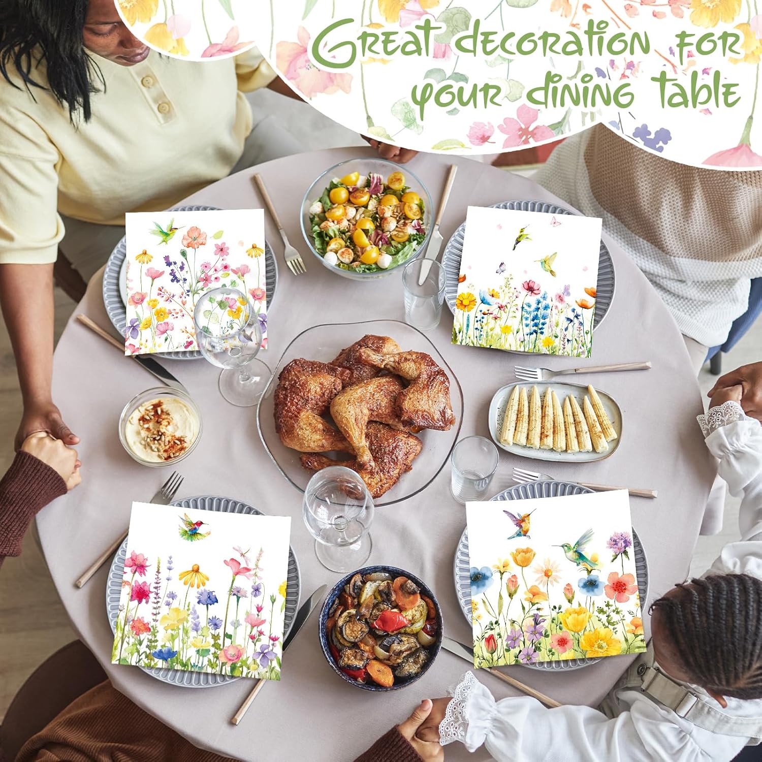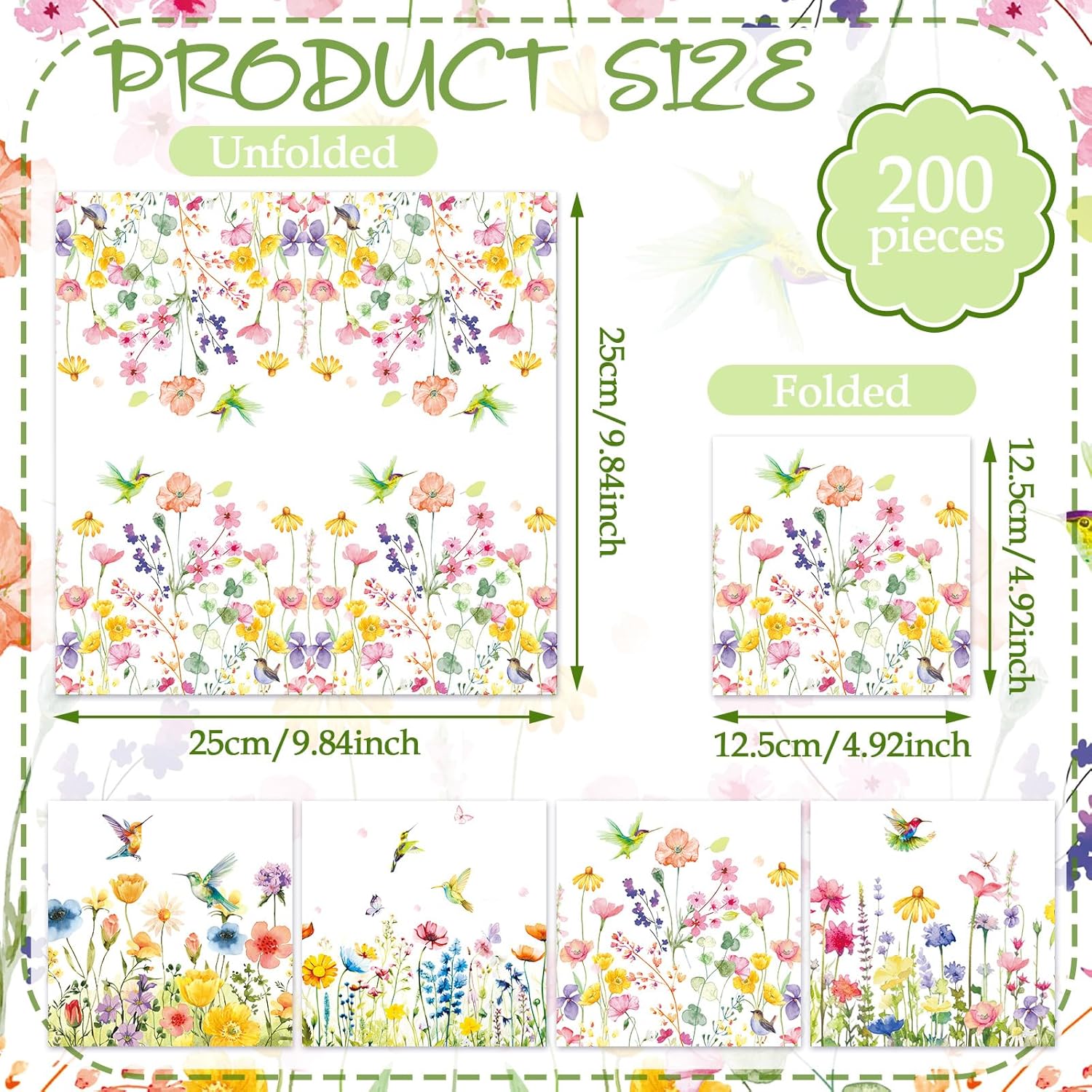 Fulmoon 200 Pieces Christmas Wildflower Cocktail Napkins Decoupage Disposable Fall Floral Dessert Paper Dinner Napkins Decorative Flower Hummingbird Beverage Towel for Xmas Party Favor Supplies