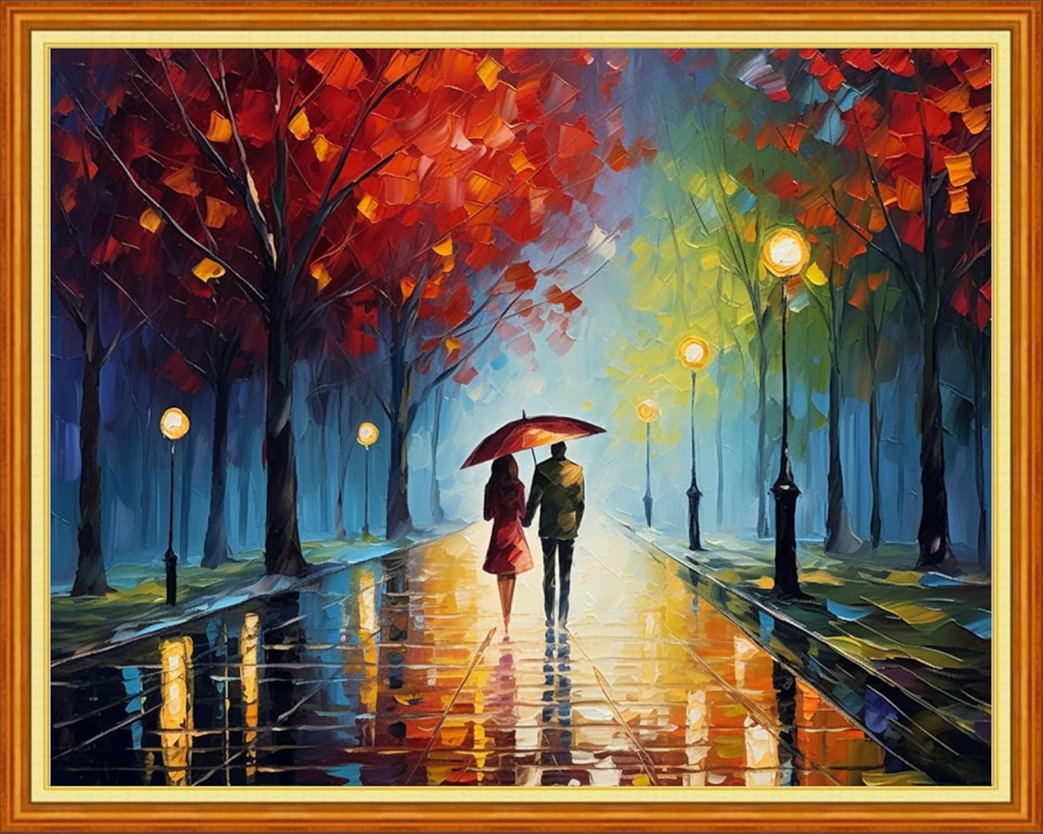 Dimxvean Stamped Cross Stitch Kits,Cross Stitch Kits for Adults Beginners,Embroidery Kits Full Range of Cross Stitch Stamped Kits Needlepoint Kits Cross Stitch Patterns-Lovers Walk 16x20 inch