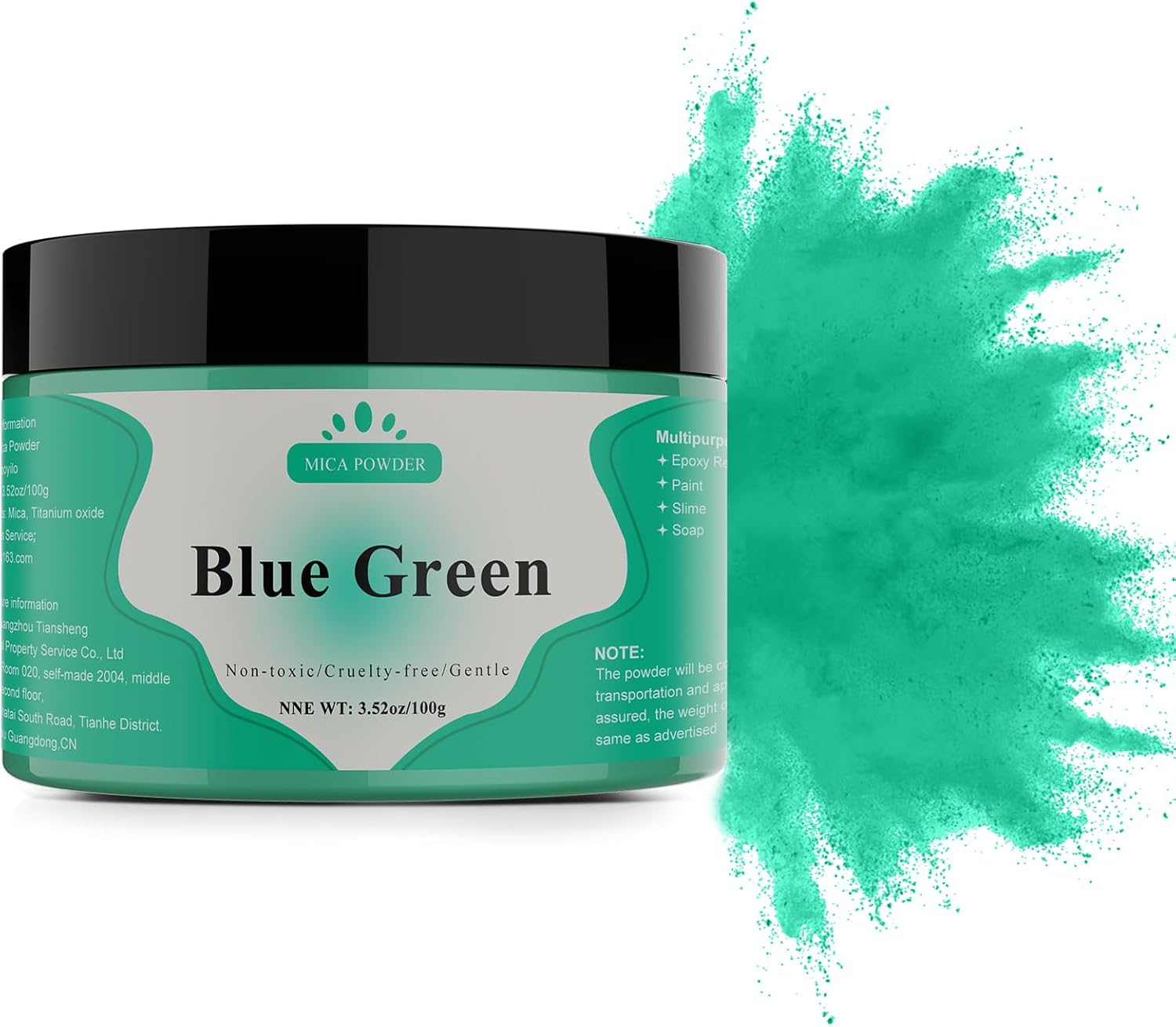Mica Powder - 100g Mica Powder for Epoxy Resin - Metallic Color Pigment for Resin, Soap, Bath Bombs, Eye Shadow, Nails, DIY Crafting Projects etc. (Blue Green)