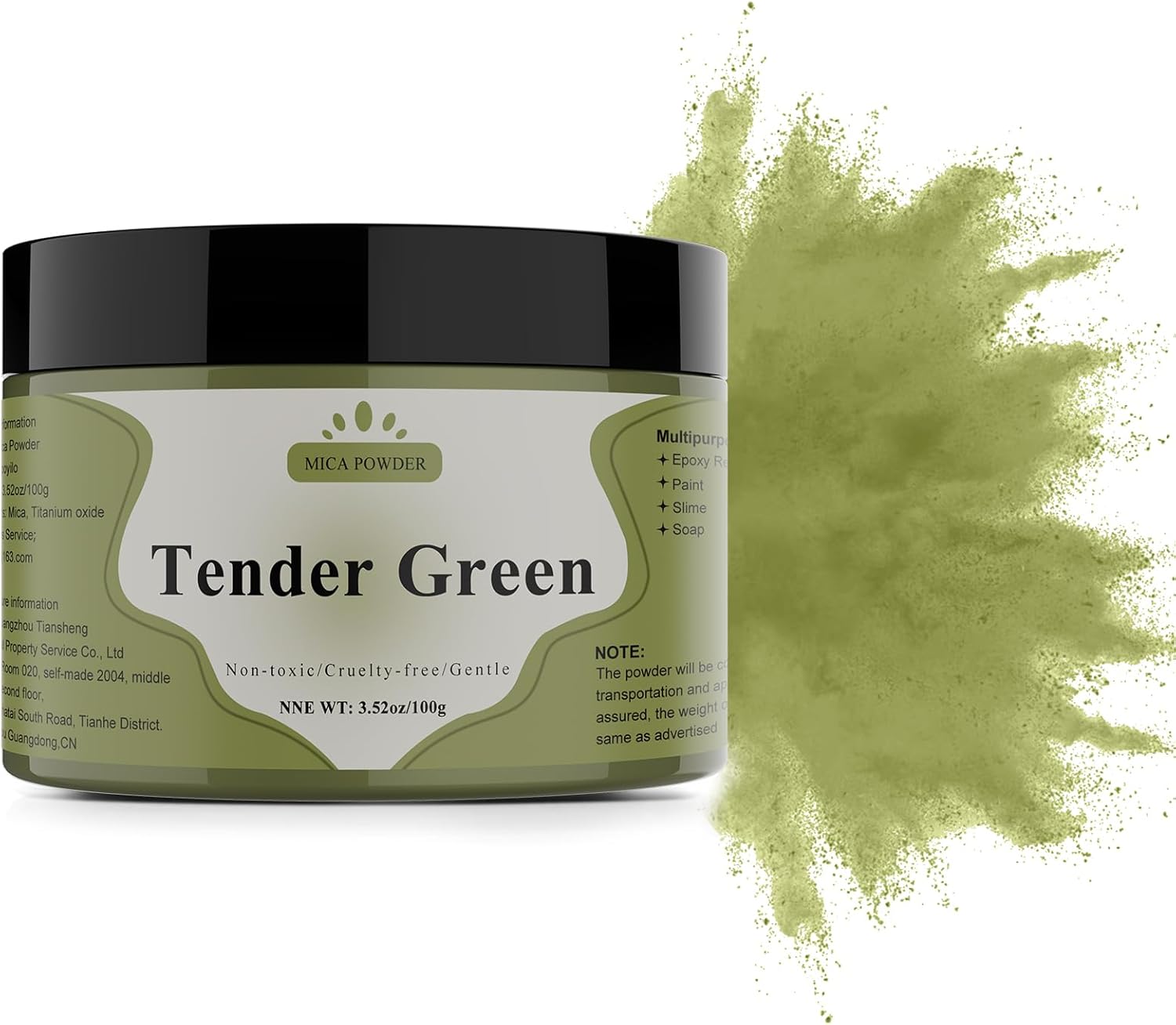 Mica Powder - 100g Mica Powder for Epoxy Resin - Metallic Color Pigment for Resin, Soap, Bath Bombs, Eye Shadow, Nails, DIY Crafting Projects etc. (Tender Green)